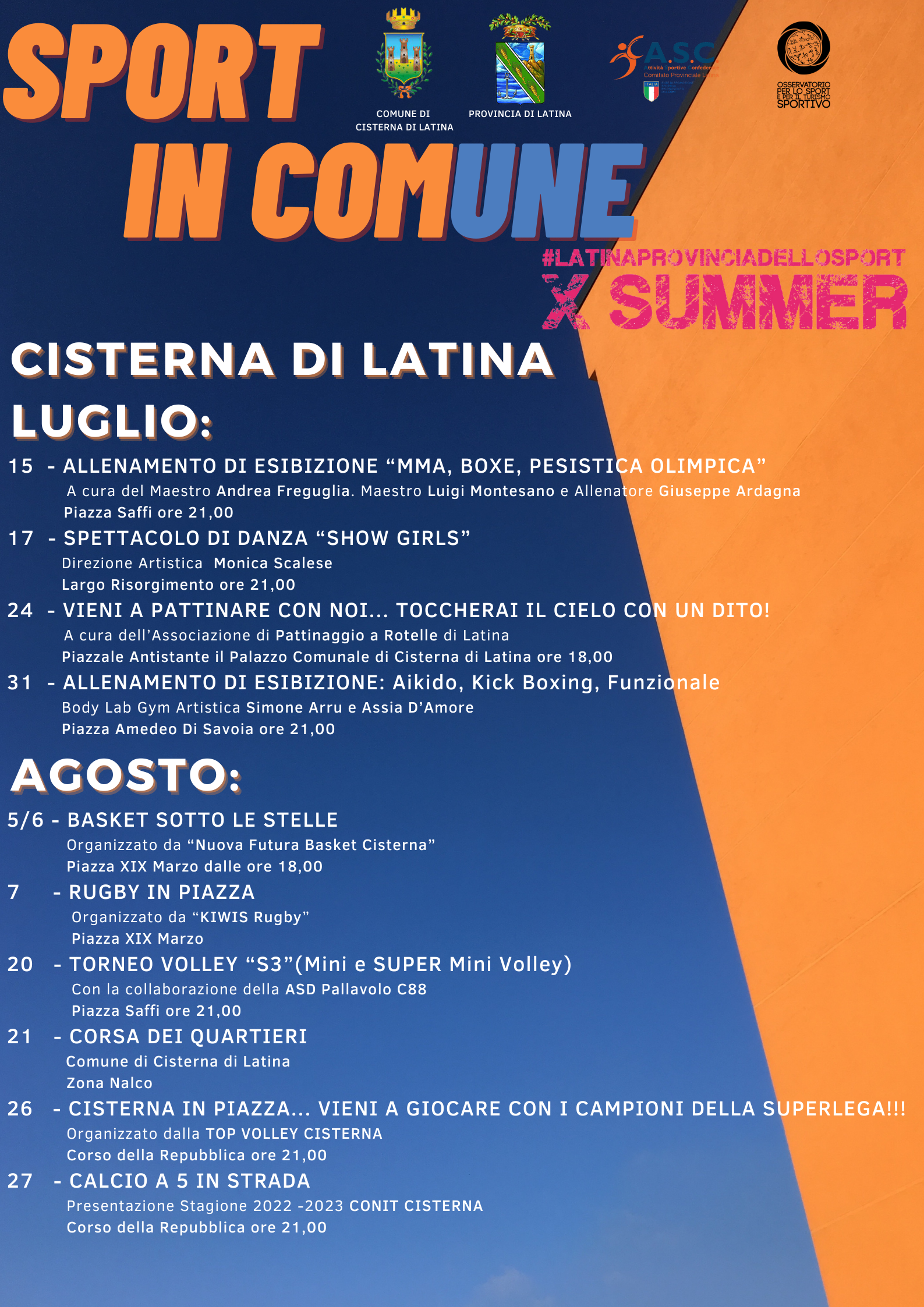 L’Estate Cisternese si arricchisce con gli eventi sportivi
