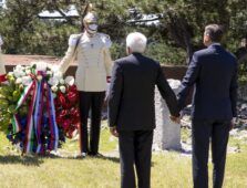 Mattarella alla foiba Basovizza, mano nella mano con sloveno Pahor