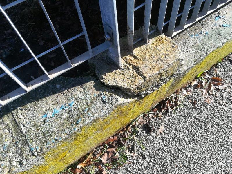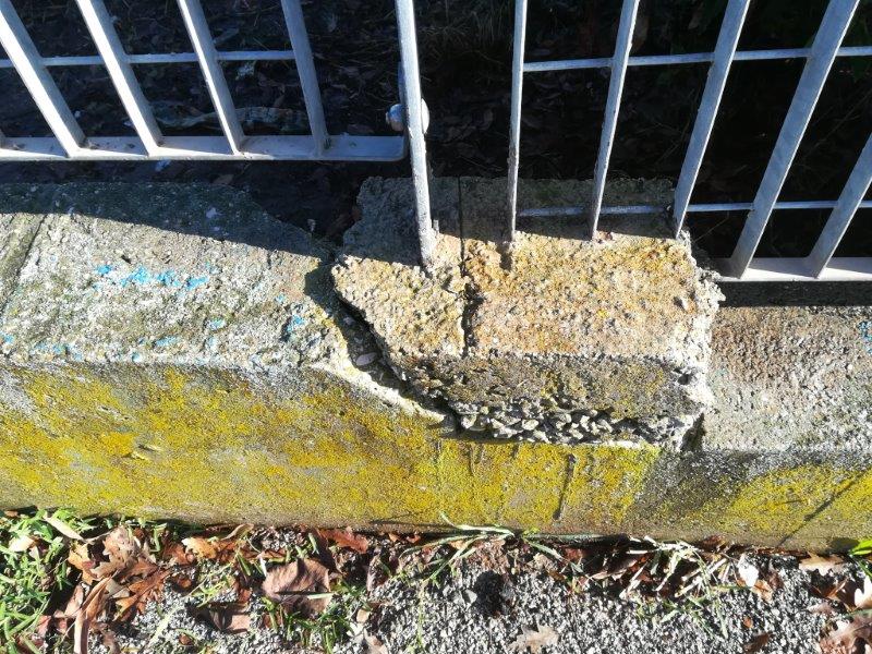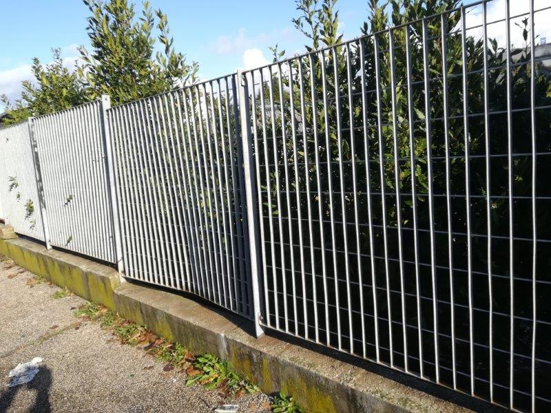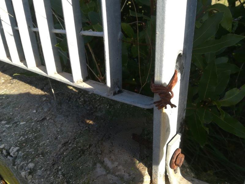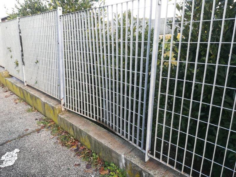 L’ultima segnalazione di cui ci siamo occupati riguarda la palestra del plesso Montarelli dove, andando a verificare, non potevamo non notare anche la recinzione, lato strada e tratto finale verso un’area verde confinante, molto piegata e con addirittura uno dei pali di sostegno pericolosamente smurato e una intera zolla di cemento venuta via.