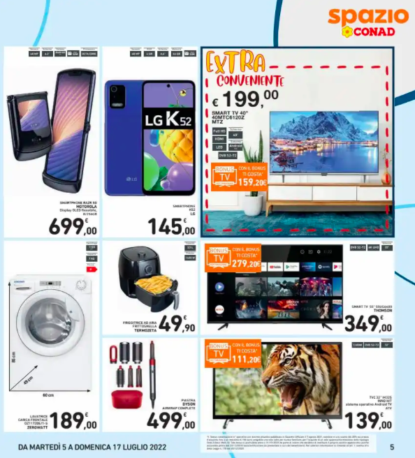 Ecco qualche altra offerta Conad da non perdere: Petto di pollo Aia a 9.99€, Lavatrice Zerowatt a 189.00€, Smartphone LG K52 a 145.00€, Piscina Bestway a 279.20€, SPA Idromassaggio Intex a 552.00€, Padella per Pancake a 11.95€, Caffettiera a 8.99€, Infradito a 14.94€, Smart tv LG a 299.00€. Allora, siete ancora lì? Non fatevi sfuggire questi e molti altri prodotti.
