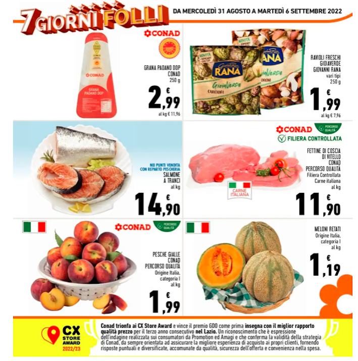 Volantino Conad, ‘7 Giorni Folli’: offerte e sconti fino al 6 settembre