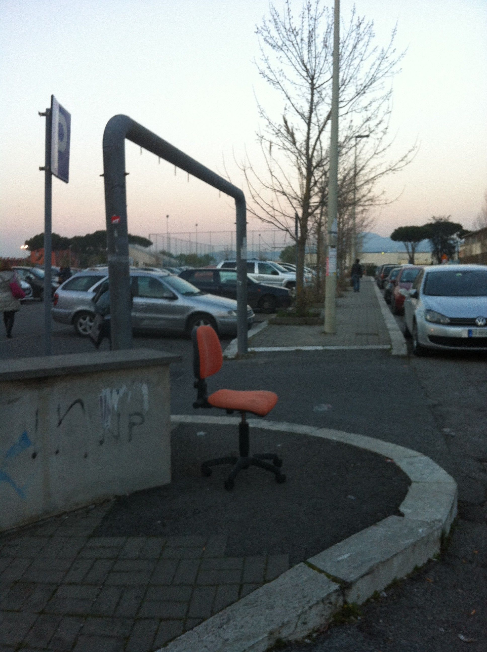 Evidentemente l’attività di meretricio stanca, e la professionista si è dotata di una comoda sedia per riposare tra una prestazione e l’altra.