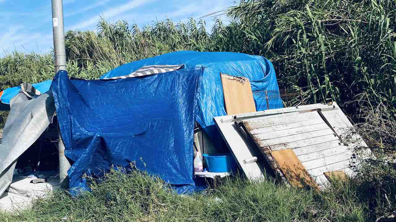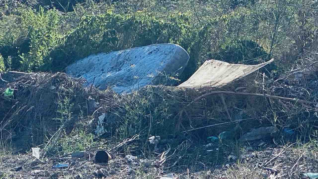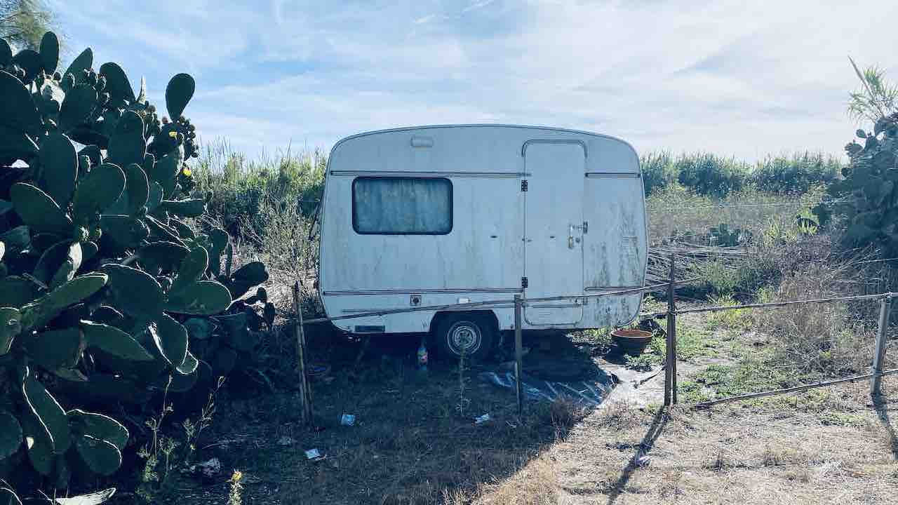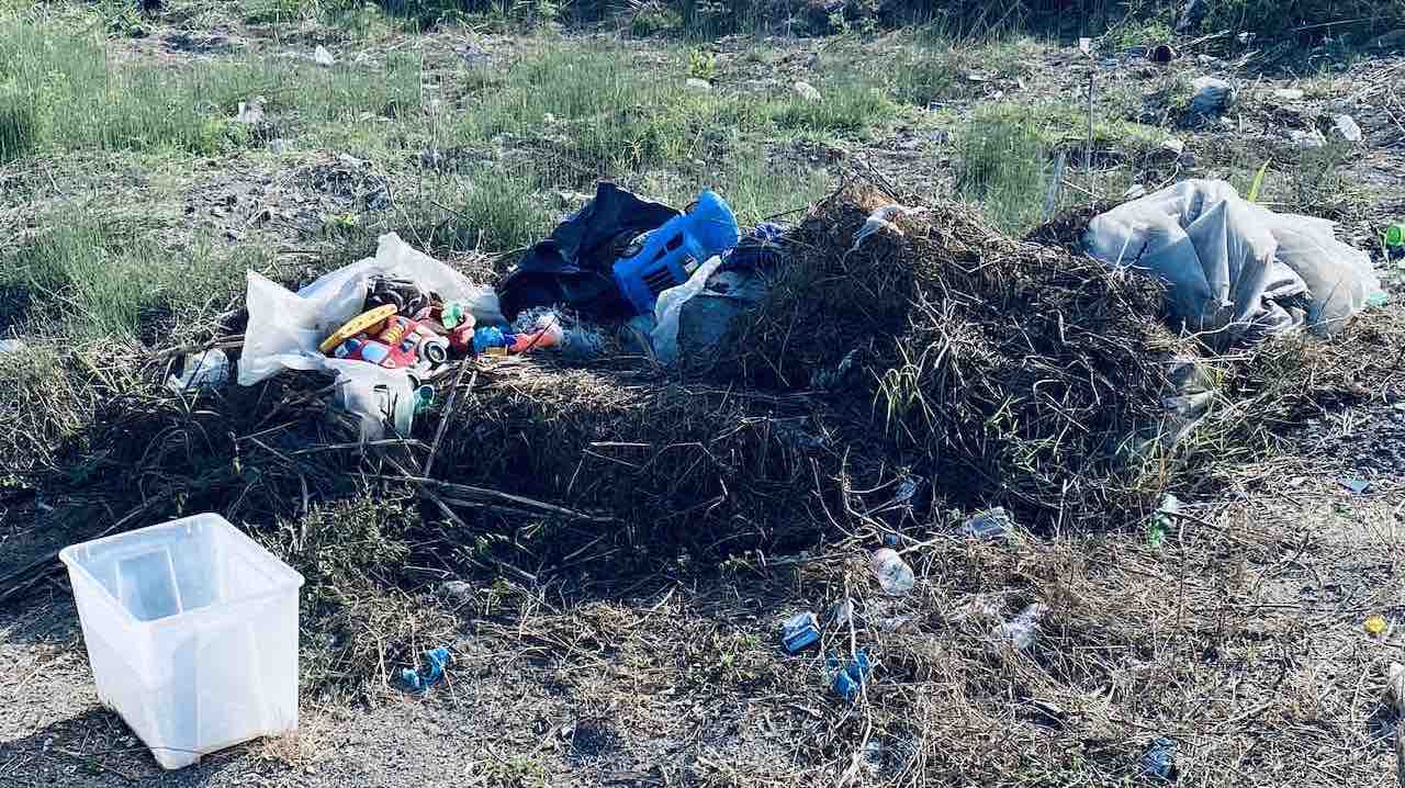 Passando oltre il canneto, addentrandosi verso l’interno, ci si ritrova immersi non solo nel verde, ma anche nei rifiuti. Qui si trovano tracce di incendi, tende e casupole, e poi ancora decine di altre discariche. Reti, materassi, mobili, calcinacci, materiale ferroso, passeggini, carrelli della spesa, bombole del gas. Si può trovare di tutto. La vegetazione in molti punti è devastata. Uno spettacolo desolante. Altre due roulotte e una tenda sono a bordo strada, anche queste circondate da rifiuti.