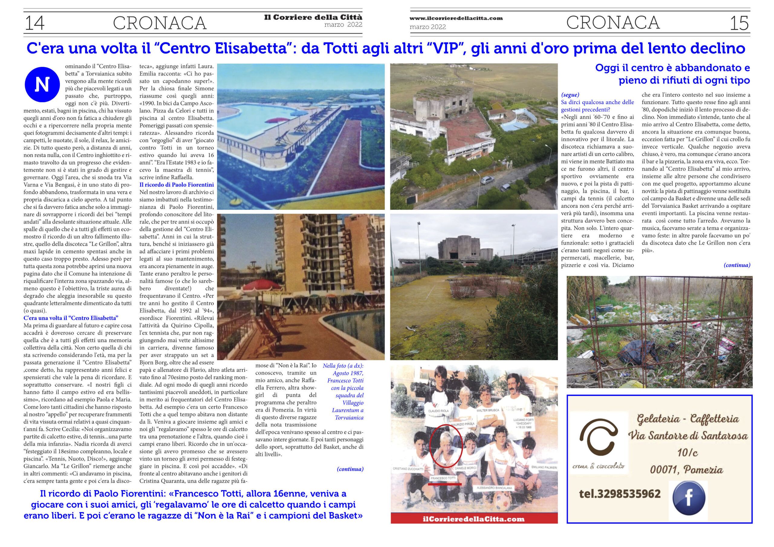 Nel nostro lavoro di archivio ci siamo imbattuti nella testimonianza di Paolo Fiorentini, profondo conoscitore del litorale, che per tre anni si occupò della gestione del “Centro Elisabetta”. Anni in cui la struttura, benché si iniziassero già ad affacciare i primi problemi legati al suo mantenimento, era ancora pienamente in auge. Tante erano peraltro le personalità famose (o che lo sarebbero diventate!) che frequentavano il Centro. «Per tre anni ho gestito il Centro Elisabetta, dal 1992 al ’94», esordisce Fiorentini.