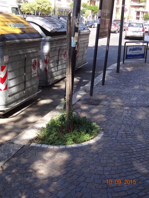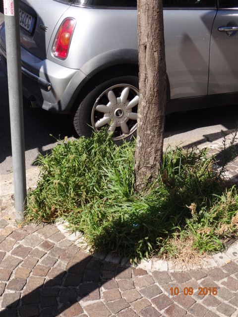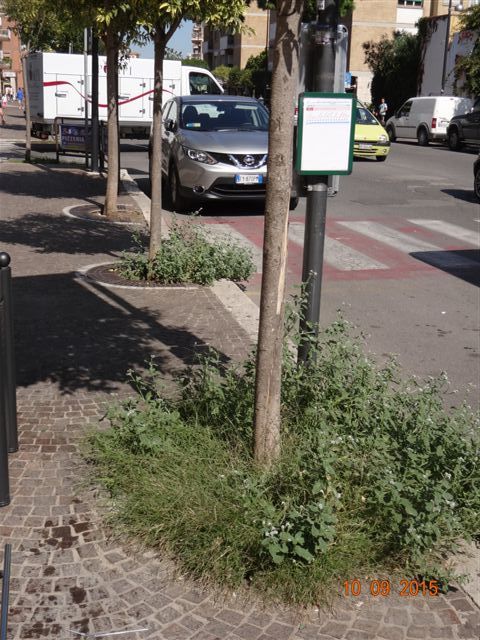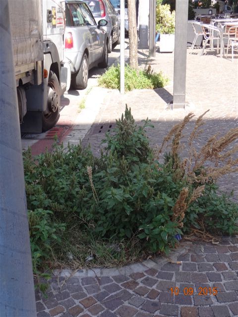 Le erbe infestanti contribuiscono al decoro di quello che dovrebbe essere il salotto buono di Pomezia: via Roma.