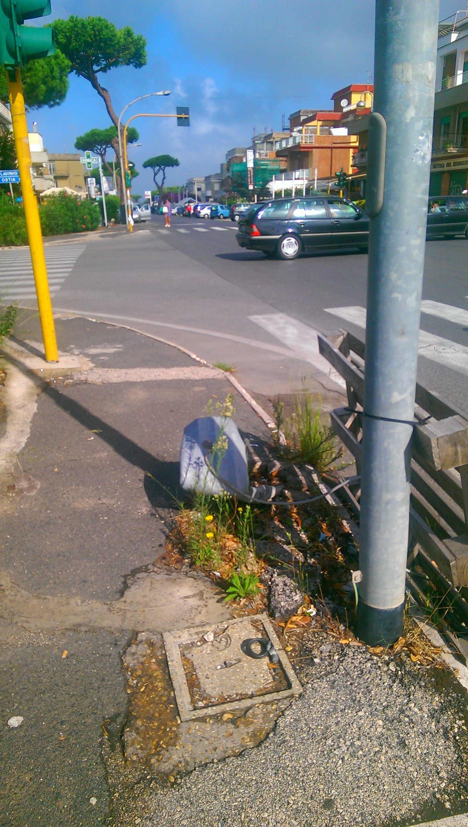 I cittadini segnalano con alcune foto che su via Ardeatina, a Lavinio, persiste da anni all’altezza del semaforo che regola il traffico, una situazione di pericolo, dovuta alla sporgenza di un vecchio palo in ferro, rimosso ma non eliminato, che ingombra il passaggio. Di fianco si trovano a terra cavi elettrici e una pedana in legno, altro pericolo per auto, moto e pedoni, che per evitare questi ostacoli potrebbero causare incidenti gravi. Inoltre il marciapiede è devastato da buche che si allagano ad ogni pioggia, impedendo ai pedoni il passaggio o la sosta.