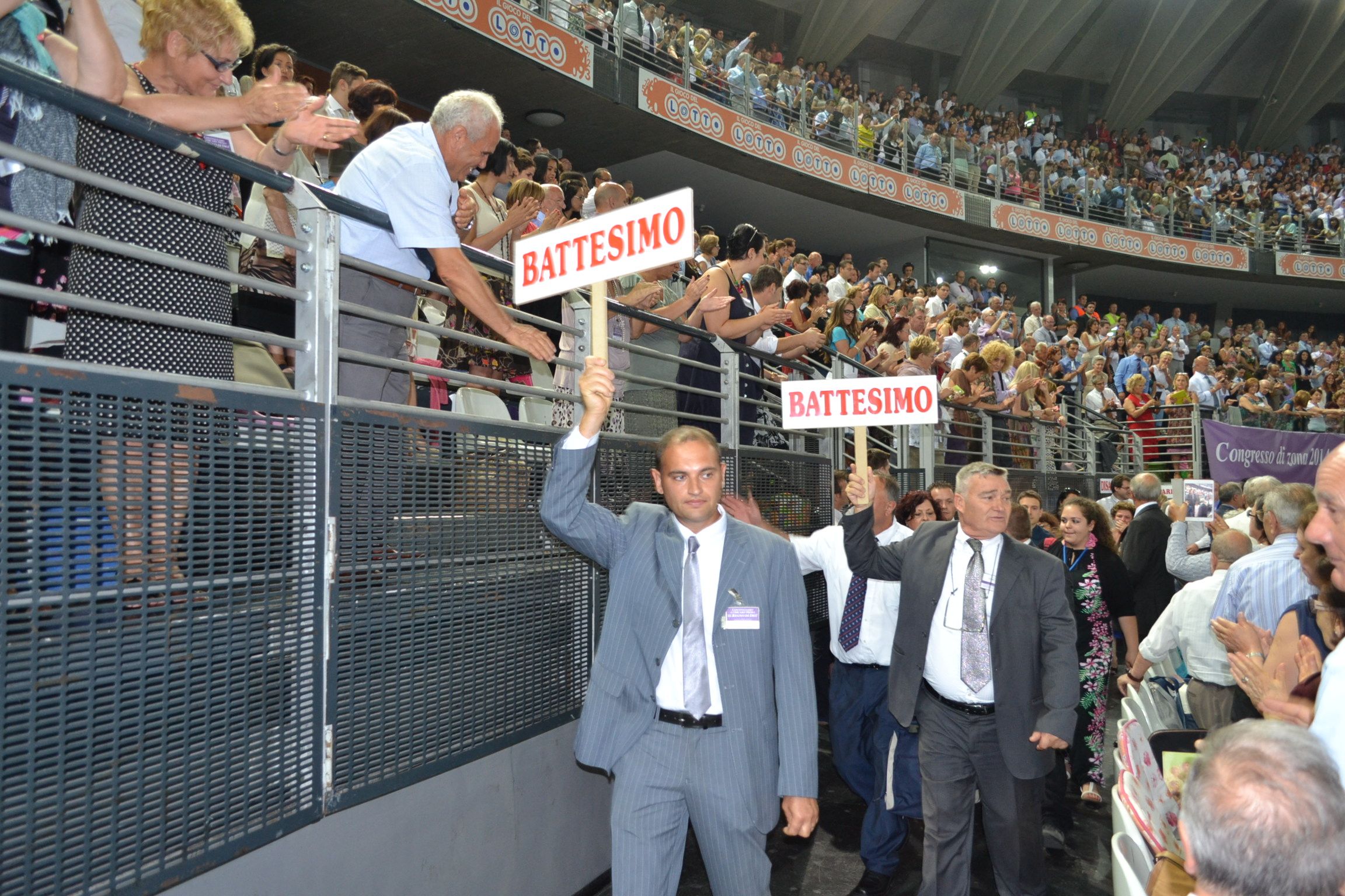 ROMA – Si conclude oggi, dopo tre giorni di intenso programma, il congresso dei Testimoni di Geova a Roma intitolato “Continuate a cercare prima il regno di Dio!”. L’evento – uno degli 87 appuntamenti previsti per quest’estate in oltre 20 città d’Italia – ha richiamato i delegati provenienti da Pomezia, dalla Capitale, dal litorale romano e dall’alto Lazio, con una media di circa 8.000 persone presenti per ciascuna delle sessioni in programma. Nella giornata di ieri, come raccontato tra queste pagine (leggi qui l’articolo), ha avuto luogo uno dei momenti più attesi dell’intera rassegna, ovvero il battesimo in acqua dei nuovi Testimoni (62) – avvenuto per immersione completa in una piscina allestita accanto al Palalottomatica – che hanno così simboleggiato la loro dedicazione a Dio. Nel pomeriggio invece, tra gli altri, è stato riprodotto un audiodramma intitolato “Geova è il solo vero Dio”.