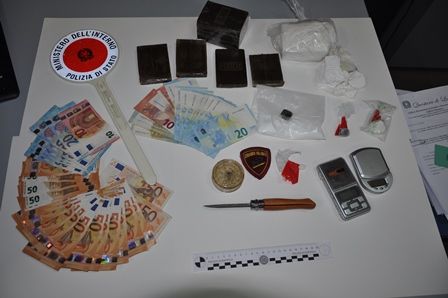 In particolare alle ore 15,30 circa di oggi, sulla scorta di informazioni preventivamente acquisite in forma confidenziale nell’ambito dell’attività di contrasto allo spaccio e alla vendita al dettaglio di sostanza stupefacente di vario genere, il suddetto personale con l’ausilio delle unità cinofile BIRBA e JAMIL, si recavano presso il grattacielo PENNACCHI ove procedeva ad alcune perquisizioni domiciliari. Nel corso delle stesse, all’interno di un’abitazione sita al 17° piano veniva rinvenuta un ingente quantitativo di sostanza stupefacente di vario genere. Per l’esattezza veniva rinvenuta all’interno della camera da letto occultata all’interno di un cassetto di un comodino circa 1 kg di hashish suddiviso in vari panetti e mezzo Kg di COCAINA parte della quale già suddivisa in involucri pronti per la vendita al dettaglio. In un altro cassetto della stessa camera sono state ritrovate banconote di vario taglio per un totale di 1500 circa sicuro provento dell’attività di spaccio nonché bilancini di precisione e ritagli di buste in cellophane per il confezionamento delle singole dosi e 200 gr di sostanza da taglio del tipo mannite. sia il denaro che la sostanza stupefacente è stata sottoposta a sequestro. All’esito della predetta attività, sono stati tratti in arresto SILVESTRINI Aurelio, classe 1990, di Latina, pregiudicato per reati specifici e denunciato DRID Monir., classe 1990, incensurato, entrambi presenti all’interno dell’abitazione. All’esito delle formalità di rito, sono stati condotti presso la locale casa circondariale .