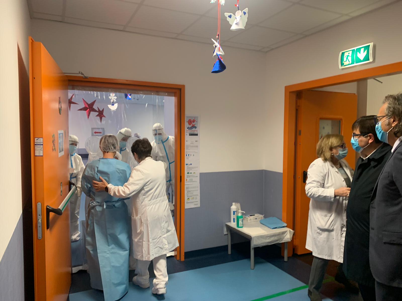L’Assessore è stato accompagnato presso il reparto di medicina Covid 2 per visionare la tenda degli Abbracci, dove è stato testimone di un momento profondo e toccante.