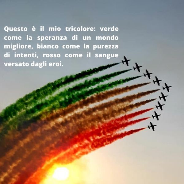 Questo è il mio tricolore: verde come la speranza di un mondo migliore, bianco come la purezza di intenti, rosso come il sangue versato dagli eroi.