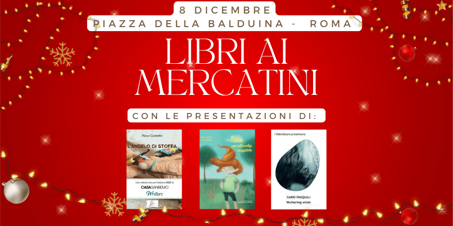 Apriamo la nostra rassegna con i mercatini di Natale in Piazza della Balduina. Nella fattispecie, il secondo appuntamento per gli scrittori della scuderia di SBS Comunicazione è previsto per giovedì 8 dicembre. La festa dell’Immacolata, che segna anche il primo giorno dei festeggiamenti natalizi, sarà all’insegna della mostra mercato a cura dell’Associazione Il Bagatto. SenzaBarcode e SBS Comunicazione, nuovamente ospiti, saranno presenti con un meraviglioso programma dedicato agli appassionati di lettura e quanti sceglieranno un libro come strenna da mettere sotto l’albero.