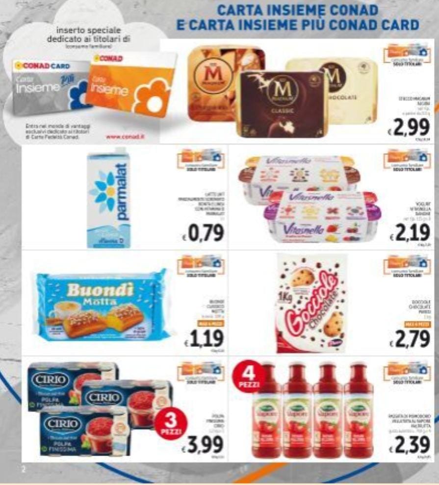 Di seguito alcune foto delle promozioni che è possibile trovare all’interno del supermercato Conad, il quale — dal canto suo — si impegna ad aggiornare costantemente i propri volantini così da alleggerire le tasche dei consumatori.
