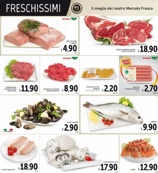 Tra le tantissime offerte, ecco alcuni articoli: Cornetti Mulino Bianco a 1.29€, Dentifricio Mentadent a 1.39€, Caffè Lavazza a 7.49€, Carta Igienica Scottex a 5.49€, Carote a 0.99€, Caffè Lavazza a 7.49€, Pecorino Romano a 3.59€, Speck Alto Adige IGP a 15.90€, Latte Parmalat a 0.79€, Passata di Pomodoro a 0.55€, Mozzarella Invernizzi a 1.89€, Melone Retato a 1.49€, Peperoni a 1.98€, Philadelphia a 1.95€, Cornetto Algida a 3.29€, Monopattino elettrico a 349.00€ , Gocciole Pavesi Biscotti a 2.69€, Tonno Rio Mare a 4.45€, Birra Tuborg a 5.99€, Assorbenti Lines a 3.49€, Cibo per gatti Felix a 6.90€, Tv Led Samsung a 219.00€.