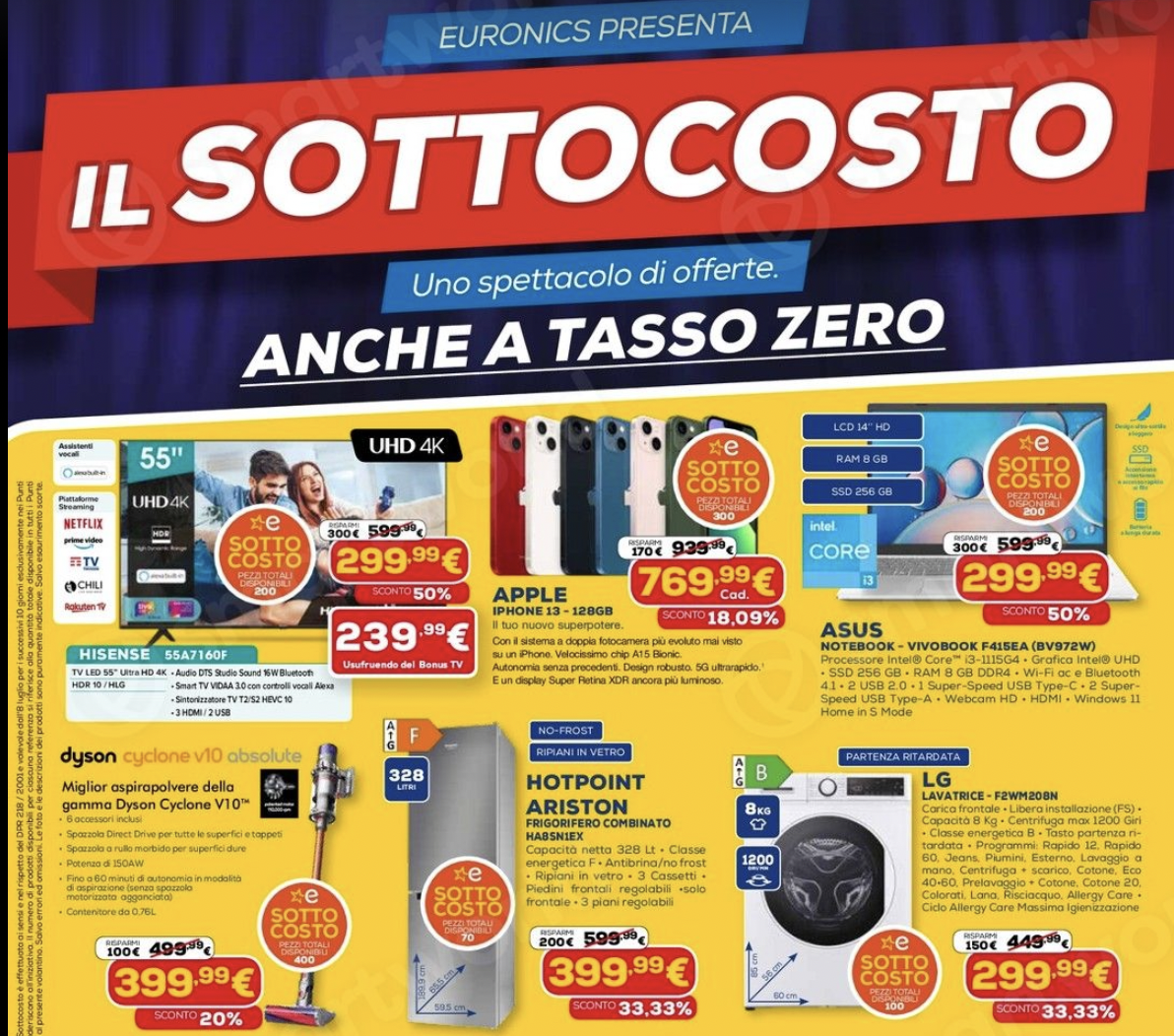 Nuovo Volantino Euronics, questa volta ‘Sottocosto anche a Tasso Zero’. Le offerte partiranno da Venerdì 8 Luglio e dureranno fino al 20 Luglio 2022. Come sempre, sono tante le opportunità e le promozioni che vi sorprenderanno!