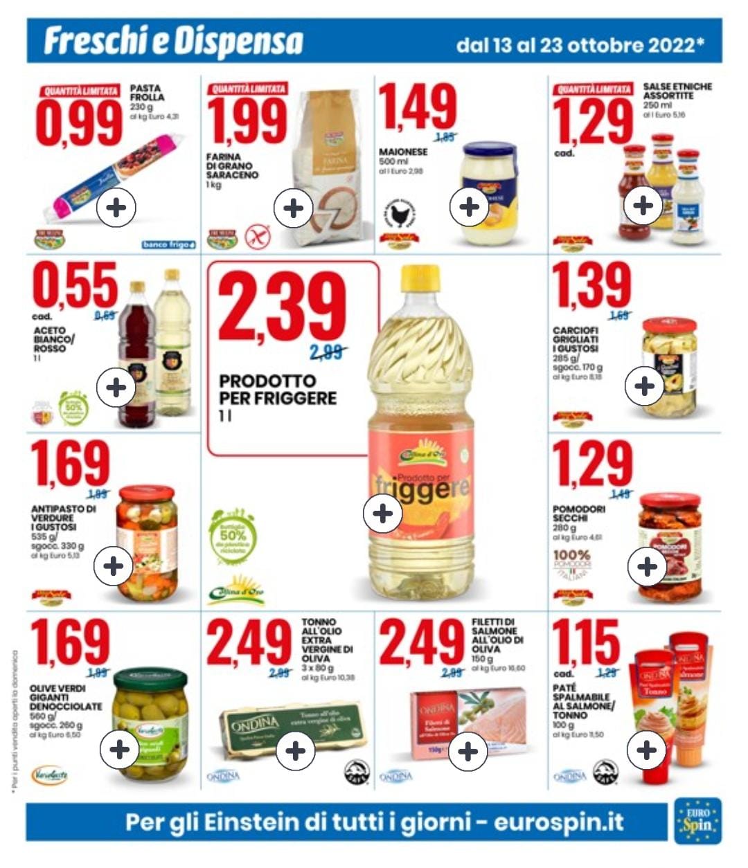 Insomma, c’è davvero l’imbarazzo della scelta! Non resta altro che fare il pieno di tutto il necessario ma attenzione, le offerte del nuovo volantino Eurospin La spesa intelligente sono valide dal 13 fino al 23 ottobre, non lasciatevele scappare! Di seguito alcune foto delle promozioni attive e che è possible trovare al supermercato.