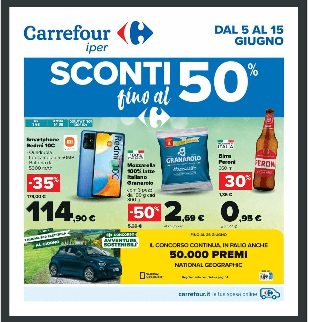 La catena di supermercati a marchio Carrefour, complice il costante aggiornamento dei propri volantini, permette ai consumatori di scegliere tra una davvero vasta gamma di offerte! In questo modo è possibile fare una spesa ricca, che accontenti tutti e soprattutto portarsi a casa dei prodotti di qualità a prezzi competitivi. Nel novero delle offerte diversi prodotti del banco frigo, del reparto surgelati e freschi, del settore per la colazione e ancora, bibite, vini e birre. In questo nuovo volantino dell’Iper Carrefour è possibile usufruire di sconti anche fino al 50%, ma attenzione, le offerte sono valide da domani, 5 giugno, è fino al giorno 15.