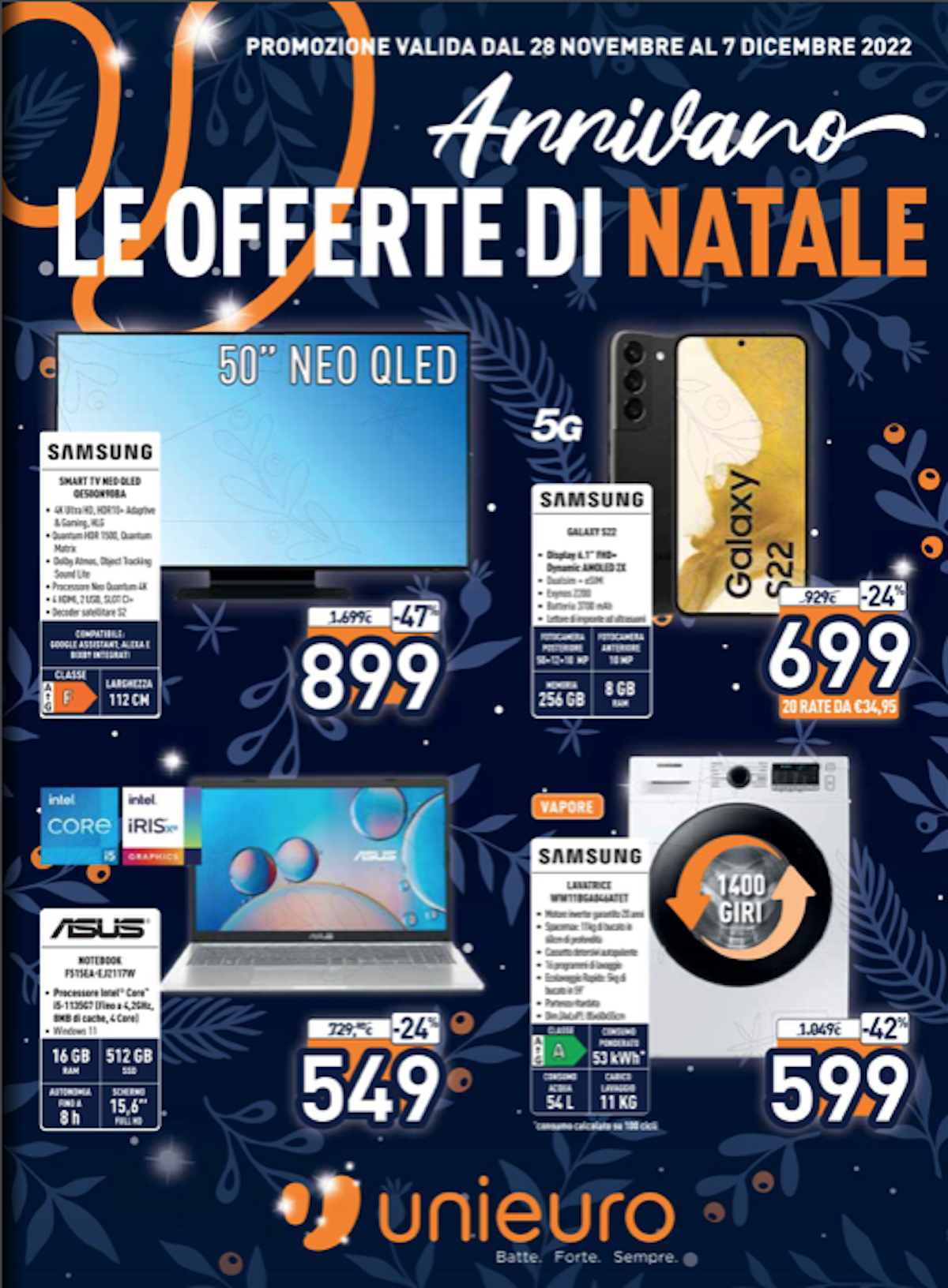 Volantino Unieuro, arrivano le nuove offerte in vista del Natale. Avete voglia di sconti e non avete fatto in tempo a usufruire del Blackfriday? Nessun problema. Unieuro è già pronto a lanciare le offerte del nuovo volantino, che dureranno fino al 7 Dicembre 2022, che daranno inoltre la possibilità di effettuare il pagamento anche a rate a tasso zero. Il volantino presenta una grande varietà di offerte.