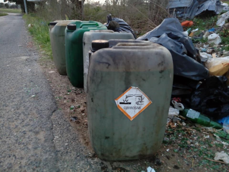 Nonostante i cittadini abbiano segnalato la presenza dell’immondezzaio abusivo, nessuno è intervenuto. Per di più, a peggiorare la situazione, con il passare delle ore alcune delle taniche sono cadute e il loro contenuto si è riversato non solo sugli altri rifiuti ma anche sull’erba e sulla strada.