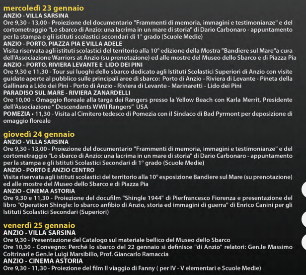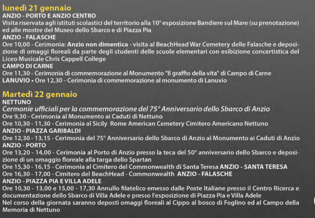 Home » Anzio » Anzio, il programma per la 75esima celebrazione dello sbarco Anzio Anzio, il programma per la 75esima celebrazione dello sbarco Pubblicato il 19 Gennaio 2019 - 10:29 di Redazione Anzio, il programma per la 75esima celebrazione dello sbarco