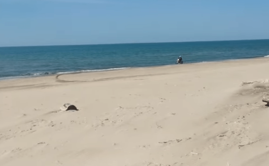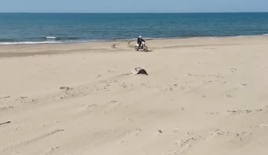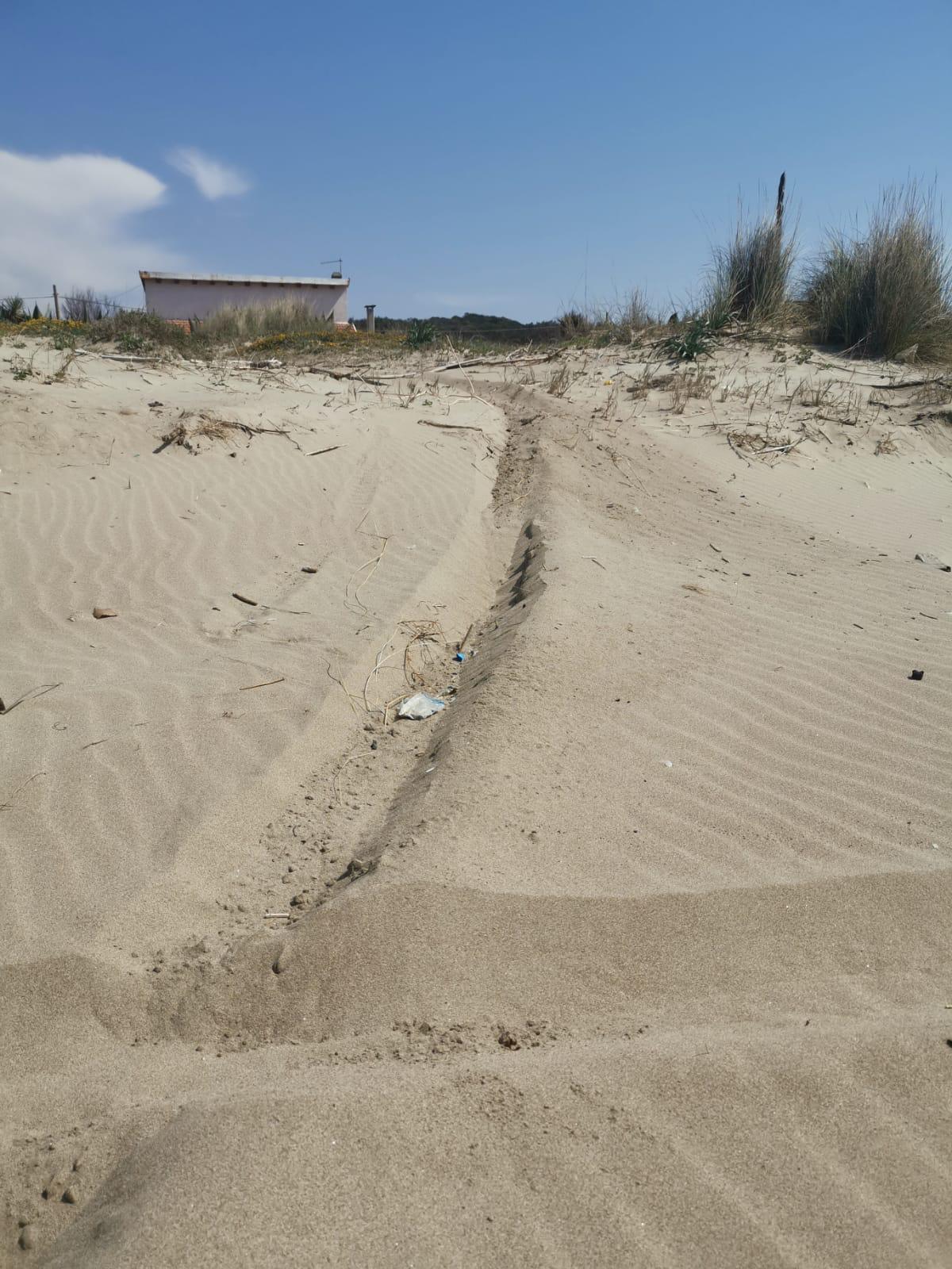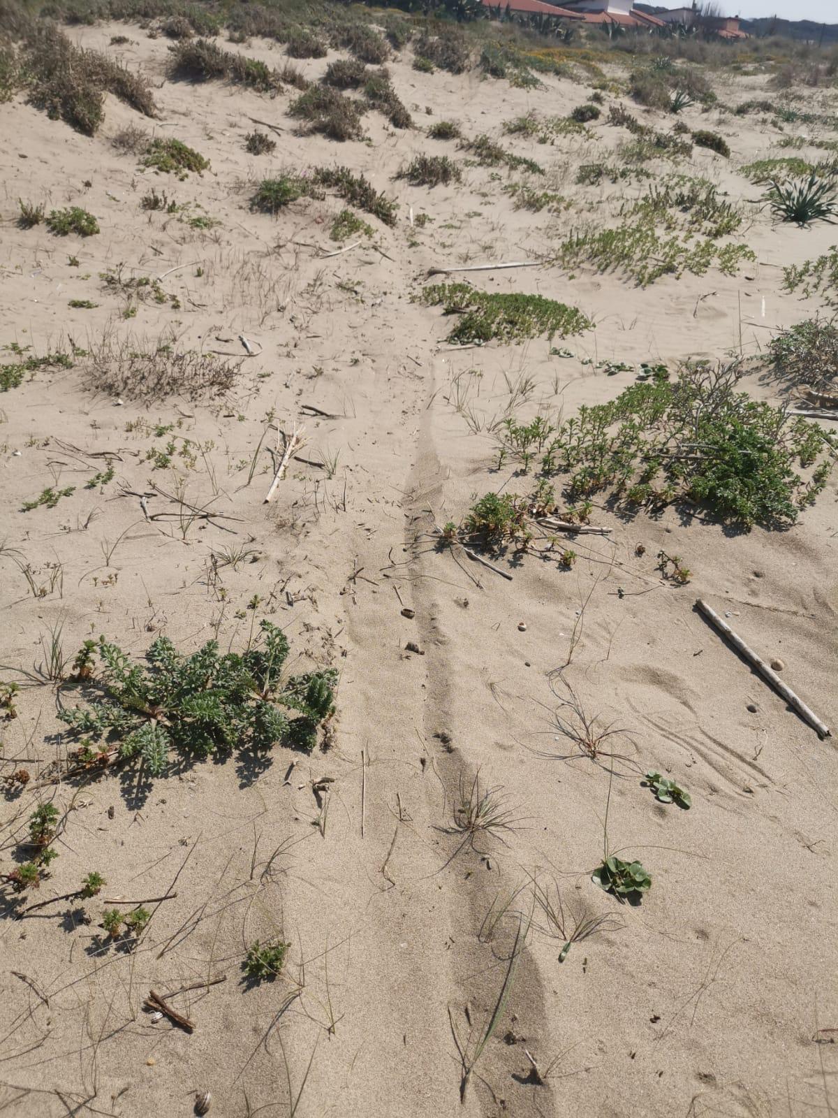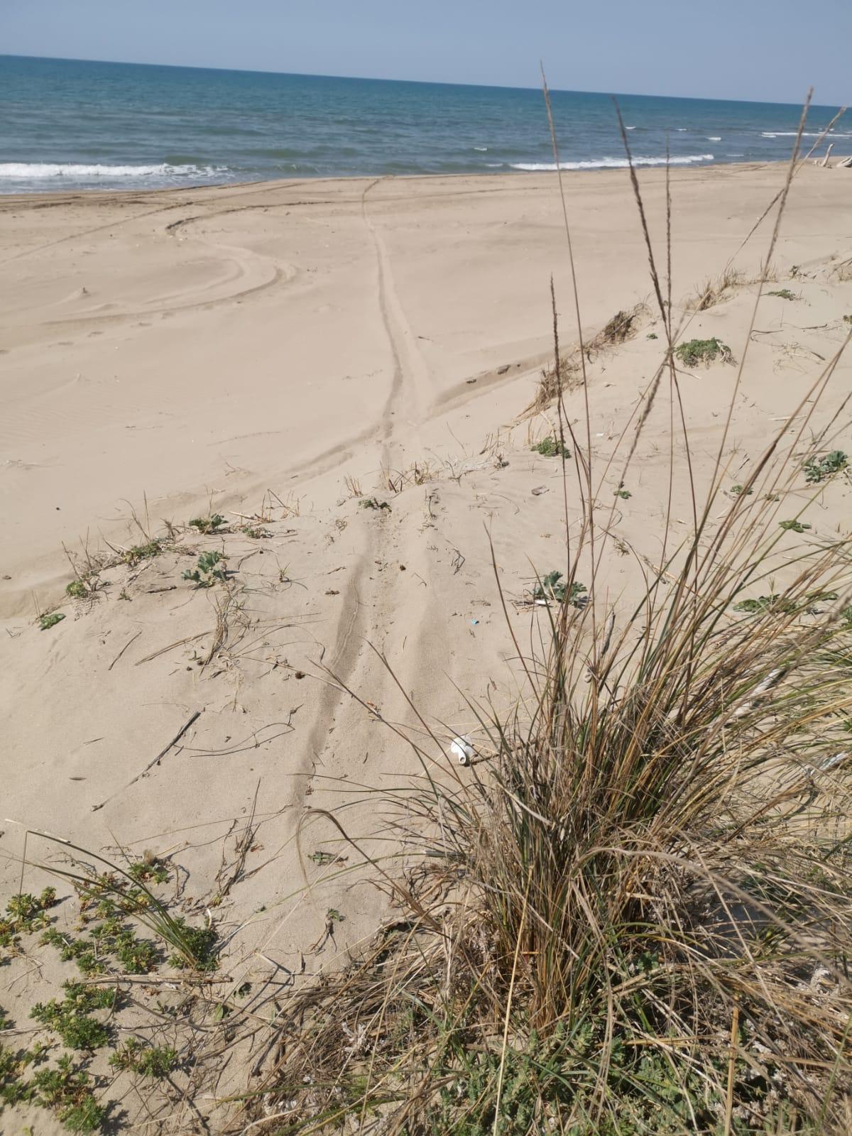La persona a bordo della moto ha fatto diversi giri in riva al mare, come dimostrano le impronte lasciate sulla sabbia che vi mostriamo nelle foto, contravvenendo all’ordinanza sindacale che vieta ogni tipo di attività sull’arenile, poi si è allontanata.
