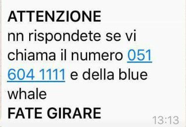 Nel primo episodio a dare l’allarme è stato uno dei gestori di telefonia mobile dopo che, un Sms, scritto da un’adolescente ad un numero fatto a caso, annunciava il superamento di tutti i livelli del gioco, indicando così un possibile epilogo fatale. Gli accertamenti informatici, eseguiti a tempo record dalla sala operativa della Questura, hanno permesso di appurare che l’adolescente era regolarmente a scuola ed ignaro di tutto. Subito dopo i poliziotti hanno scoperto che un compagno di classe del presunto giocatore, per scherzare, aveva mandato l’Sms con i riferimenti al “Blue Whale”.