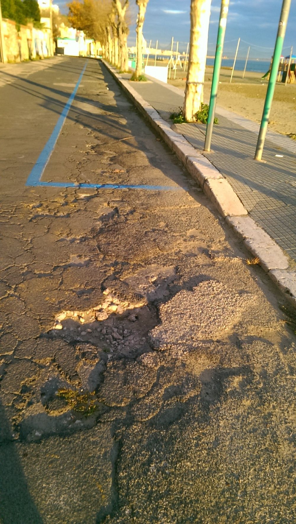 Si prosegue poi con la segnalazione dello stato pietoso del manto stradale, con crepe e buche diffuse.