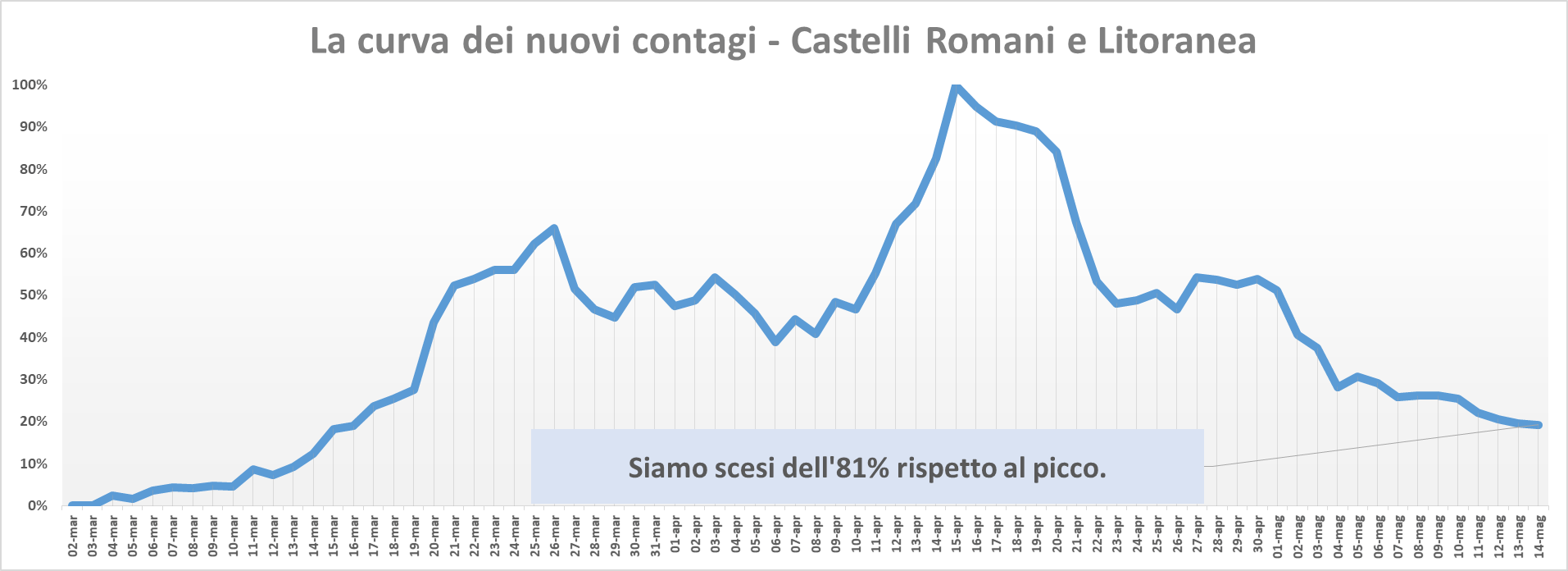 Nella tabella seguente viene riportata la ripartizione dei contagi per singolo comune dei Castelli Romani e della Litoranea sulla base delle comunicazioni ufficiali delle autorità competenti.