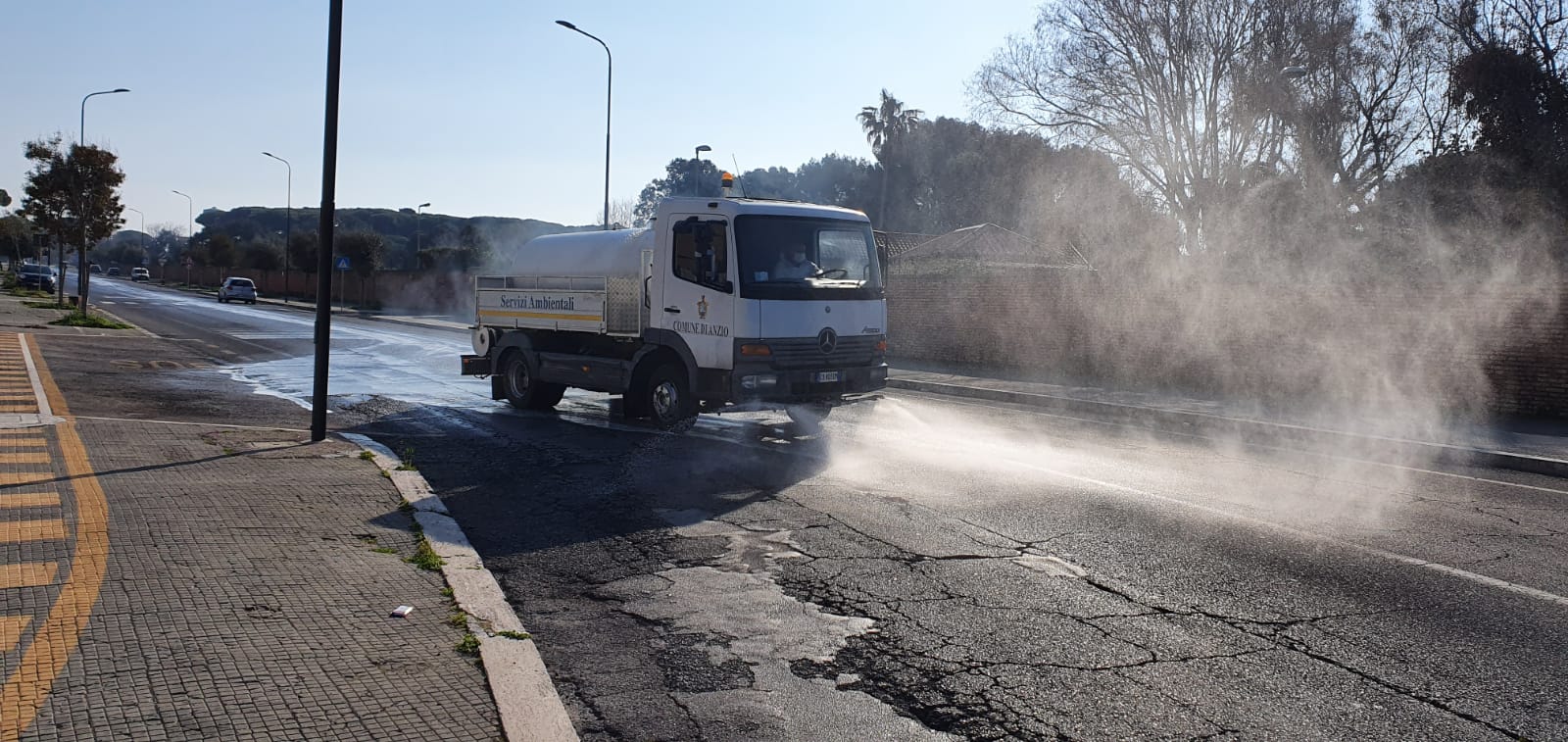 Ad Anzio prosegue l’attività di sanificazione del territorio comunale, messa in campo dall’Amministrazione De Angelis, per la prevenzione della diffusione epidemiologica del Coronavirus. Durate il giorno l’autobotte comunale è operativa in tutti i quartieri cittadini.