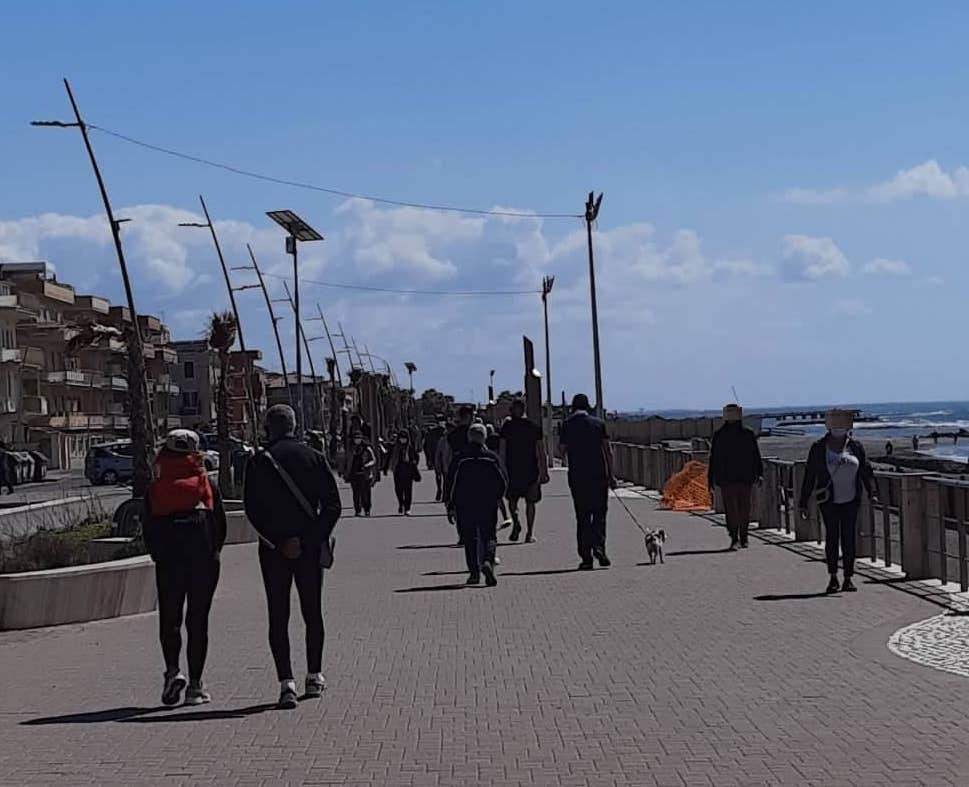 Dopo il “deserto” della domenica di Pasqua, oggi sono state molte di più le persone che hanno deciso di uscire e fare una passeggiata sul lungomare: da Ostia a Nettuno, passando da Torvaianica, Ardea e Anzio, un po’ di movimento si è visto, nel rispetto delle regole.