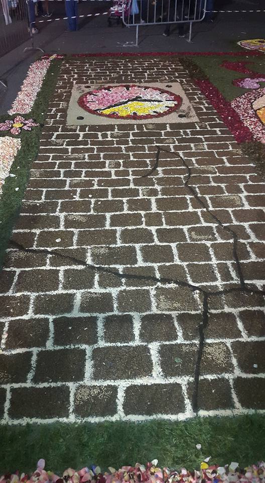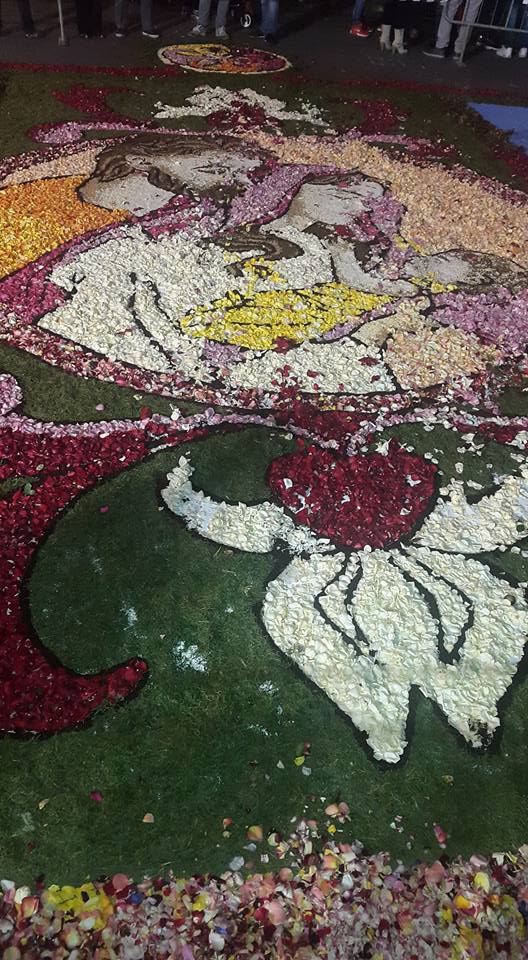 In occasione della festività del Santo Patrono apriliano, che quest’anno sembra essere particolarmente sentita, è stata realizzata in Piazza Roma un infiorata piccola ma molto rappresentativa e toccante.