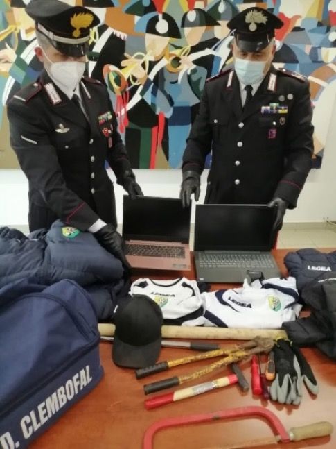 Il sinergico intervento ha consentito di  assicurare alla giustizia i  responsabili del fatto delittuoso che, a seguito delle perquisizioni personali e veicolari,  sono stati trovati in possesso di oggetti da scasso, computer ed abbigliamento sportivo provento di furto.