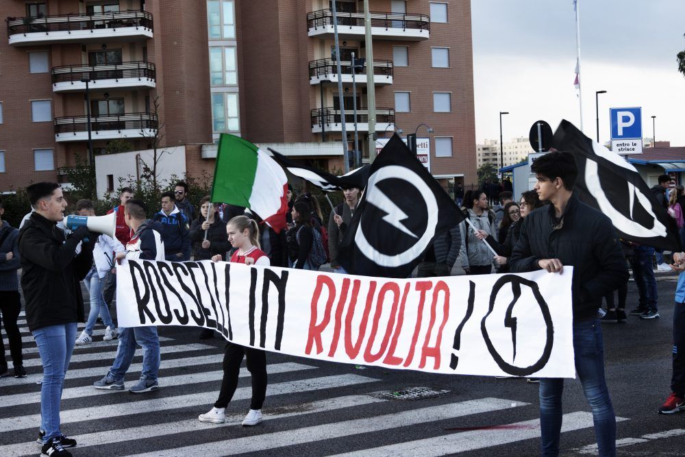 “Una provocazione – concludono i ragazzi del Blocco Studentesco – che non vuole rimanere isolata ma a cui seguiranno altre azioni, che avranno sempre protagonisti i ragazzi del Rosselli, stanchi di un istituzione che non si occupa della scuola pubblica e dei suoi reali problemi: Edilizia scolastica, trasporti pubblici, caro libri, contributo volontario. Le famiglie italiane non possono più pagare l’inefficienza di una classe dirigente ipocrita. Noi saremo come sempre al fianco degli studenti apriliani, come stamattina, in questa battaglia sia dentro che fuori scuola, perché la voglia di riscattare il proprio futuro deve partire dai banchi delle classi, perché il futuro va conquistato. Va conquistato andando all’assalto”.