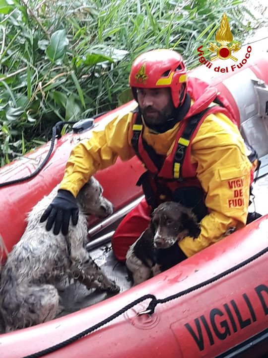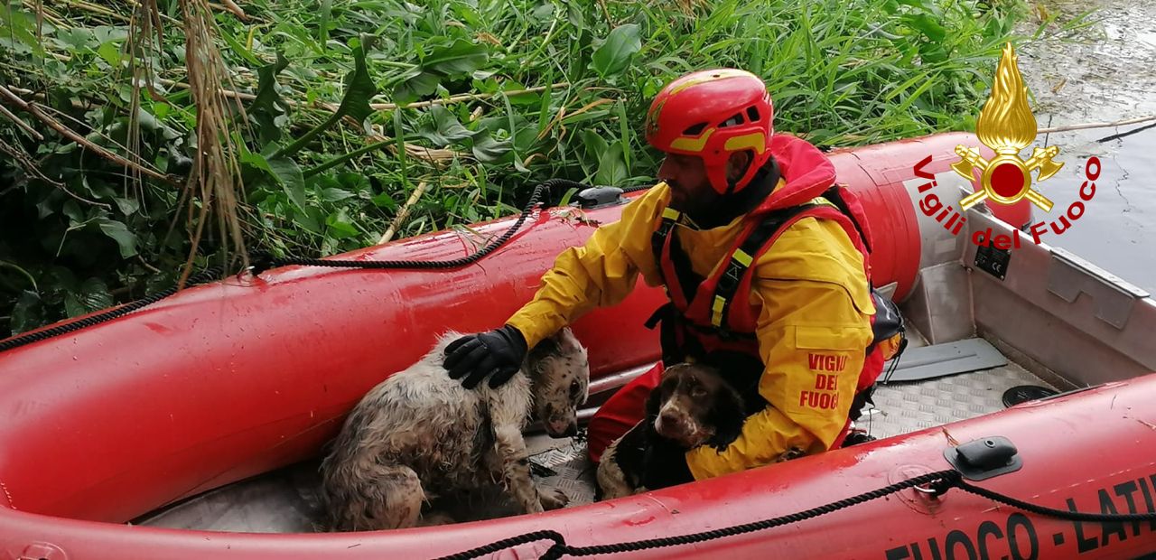 Doppio salvataggio effettuato oggi dai vigili del fuoco in provincia di Latina, tre cani portati al sicuro.