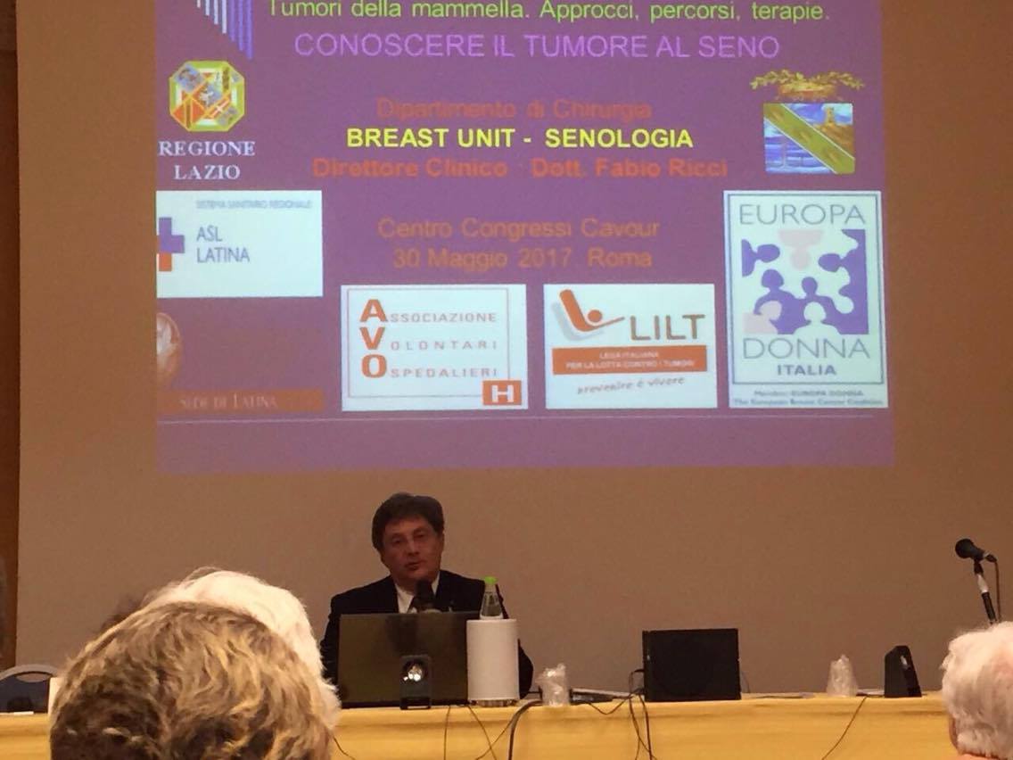 Il chirurgo senologo Fabio Ricci relatore al primo convegno nel Lazio di Europa Donna tenutosi il 30 Maggio a Roma, ha parlato di:” Tumori della mammella. Approcci, percorsi, terapie. Conoscere il tumore al seno”.