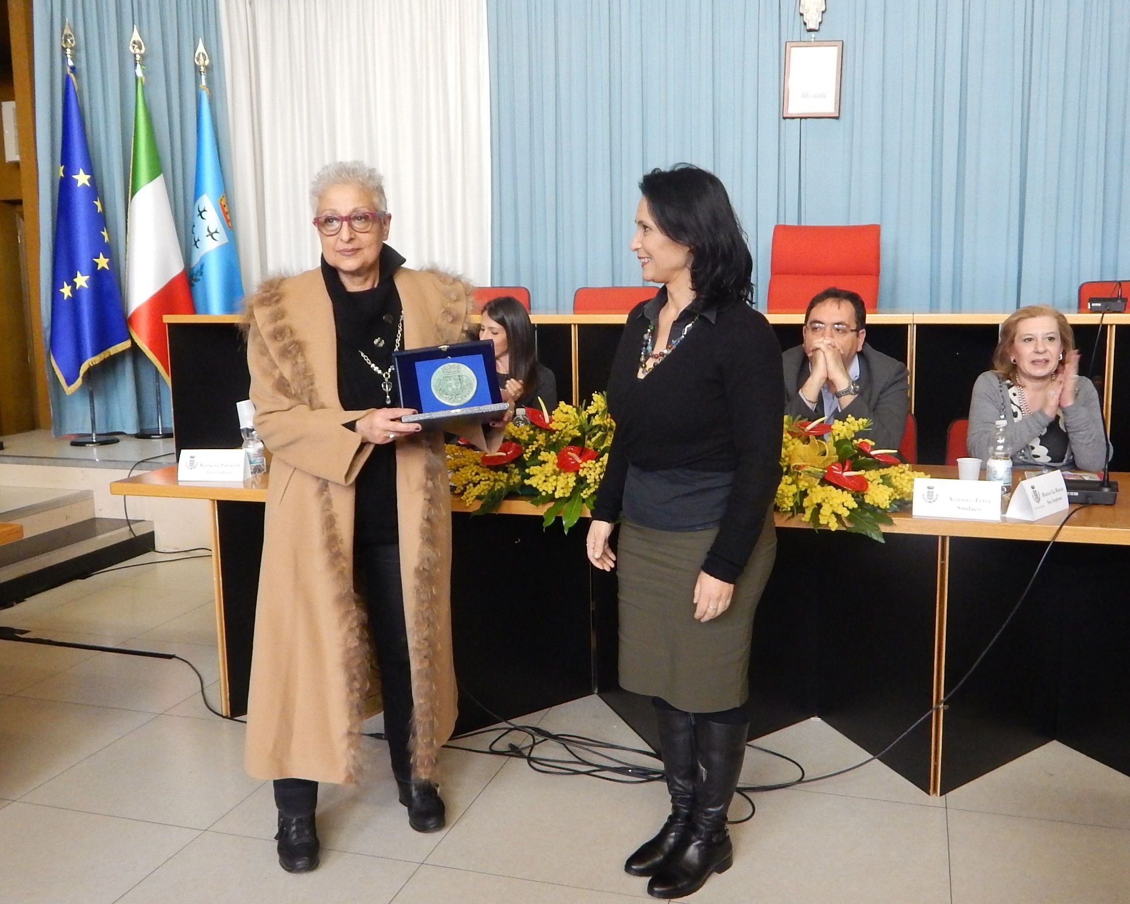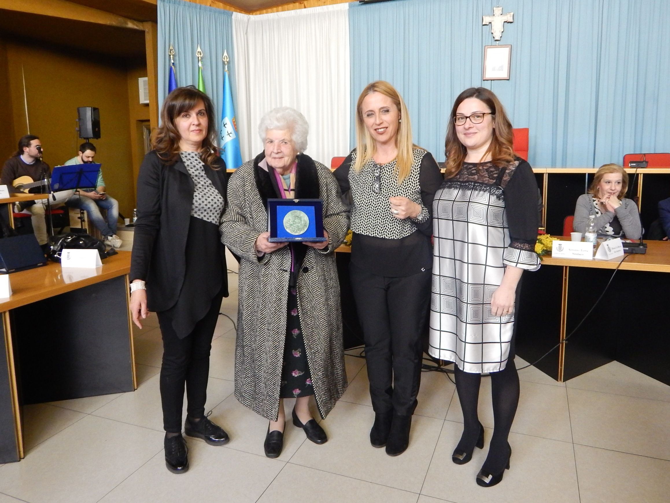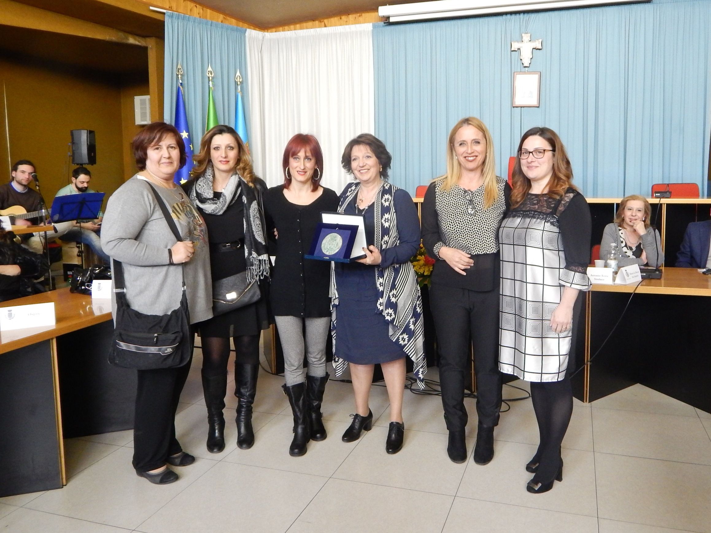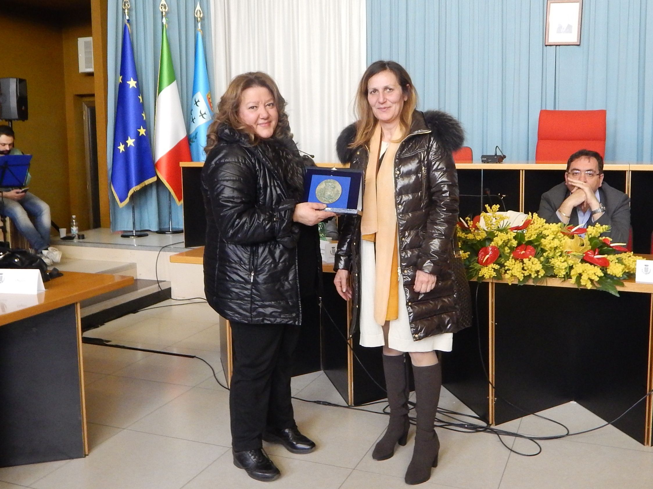 Nella seconda parte della cerimonia, come detto, sono state premiate le signore Giovanna Cuomo, Assunta De Santis, Maria Teresa Prioli, Giuseppina Prioli, Lucia Prioli, Stefania Grillo, Pia Carucci, Stefania Michelessi, Giuseppa Doria e Michela Molinari con un manufatto in terracotta raffigurante il logo della Città di Aprilia realizzato dal gruppo “Le Donne di Via Aspromonte” della Casa Circondariale di Latina.
