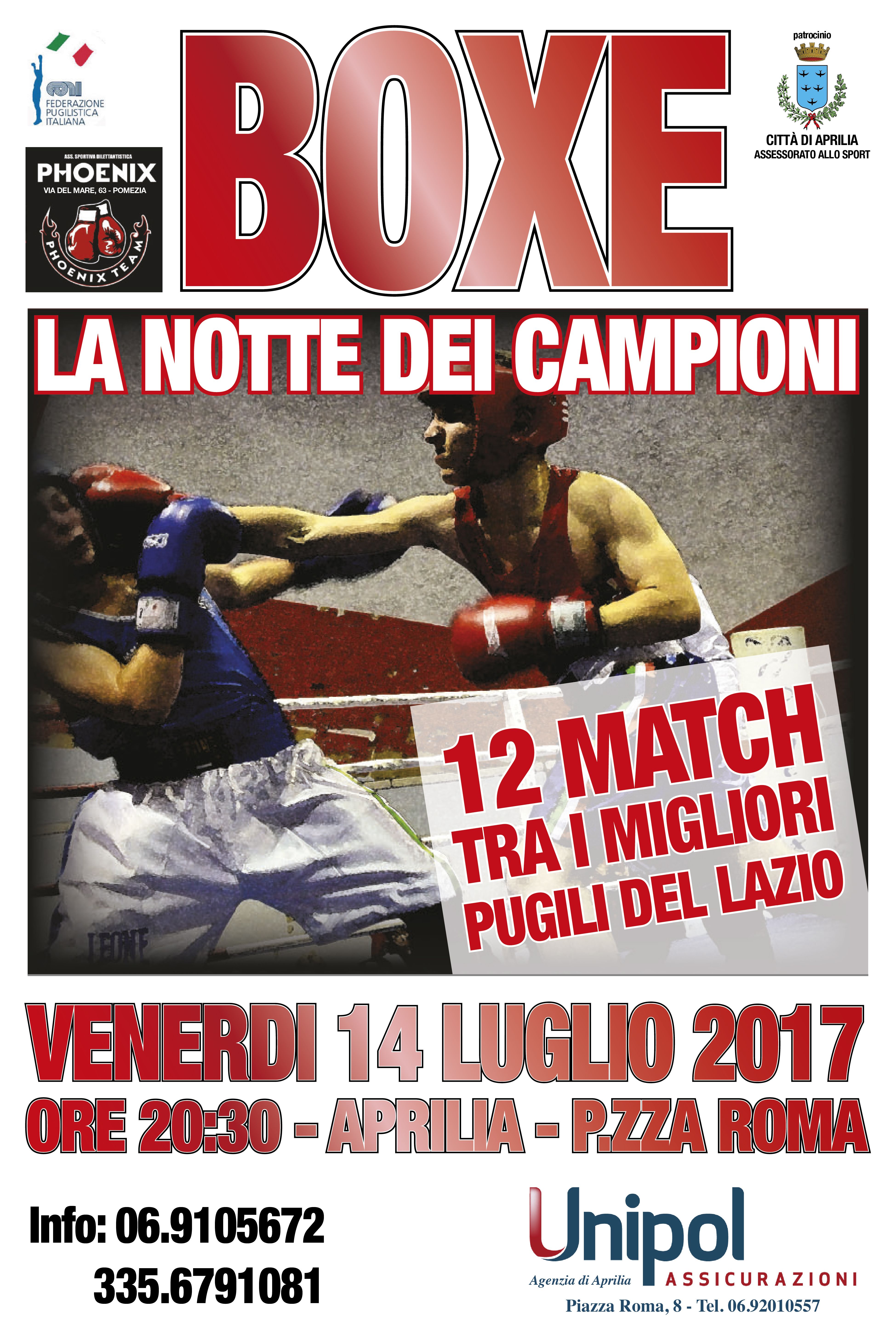 Domani sera dalle ore 20.30, in Piazza Roma di Aprilia, grande appuntamento con la box ne “La Notte dei Campioni”.