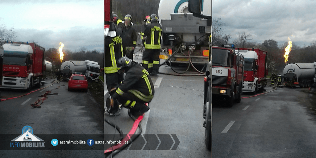 Si lavora senza sosta da questa mattina sulla SR 148 Pontina, dopo il brutto incidente che ha visto coinvolta un’autocisterna piena di prodotto infiammabile.