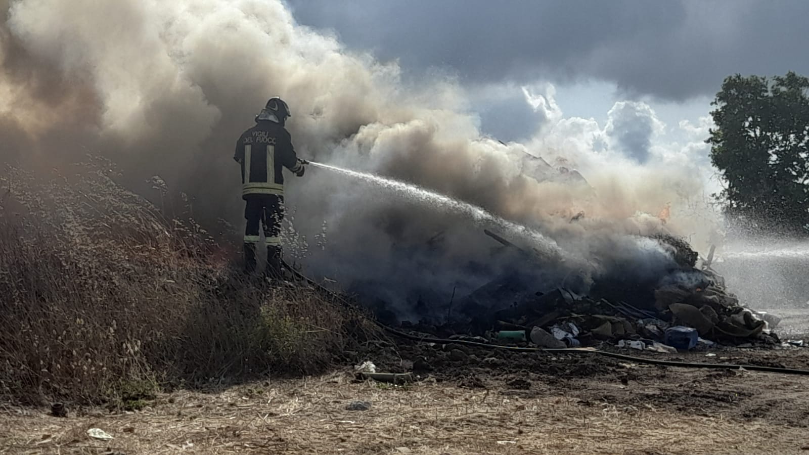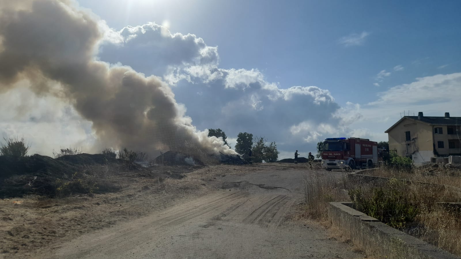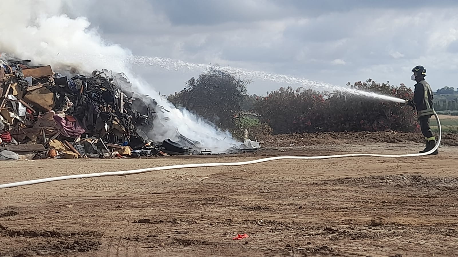Tutto il materiale era stato accatastato, ma qualcuno ha pensato bene di “eliminarlo”, dando fuoco al tutto e generando l’ennesimo disastro ecologico. L’aria si è immediatamente resa irrespirabile per diverse centinaia di metri.