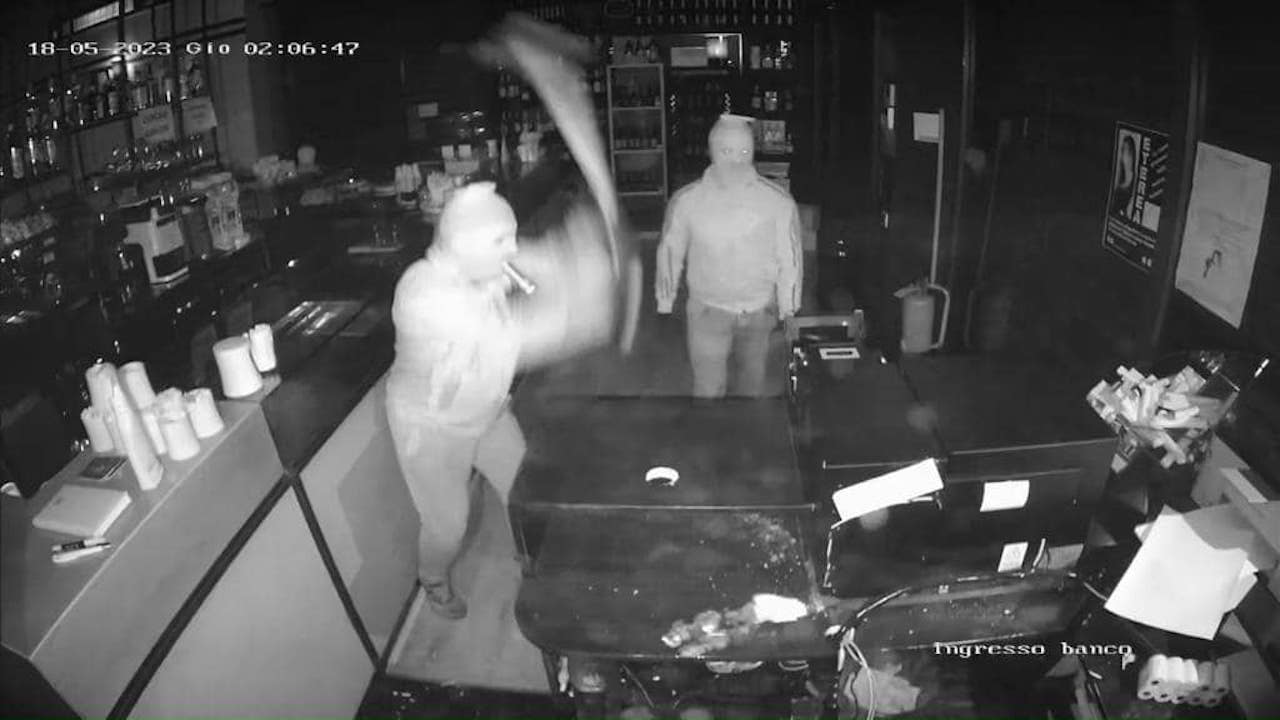 È successo la notte di giovedì 18 maggio. Due sconosciuti, con il volto travisato da passamontagna integrali, sono entrati alle 2:06. Le telecamere di videosorveglianza del bar li hanno immortalati mentre, con furia, hanno spaccato il bancone utilizzando un’ascia per poter asportare la cassa automatica contenente il fondo cassa.