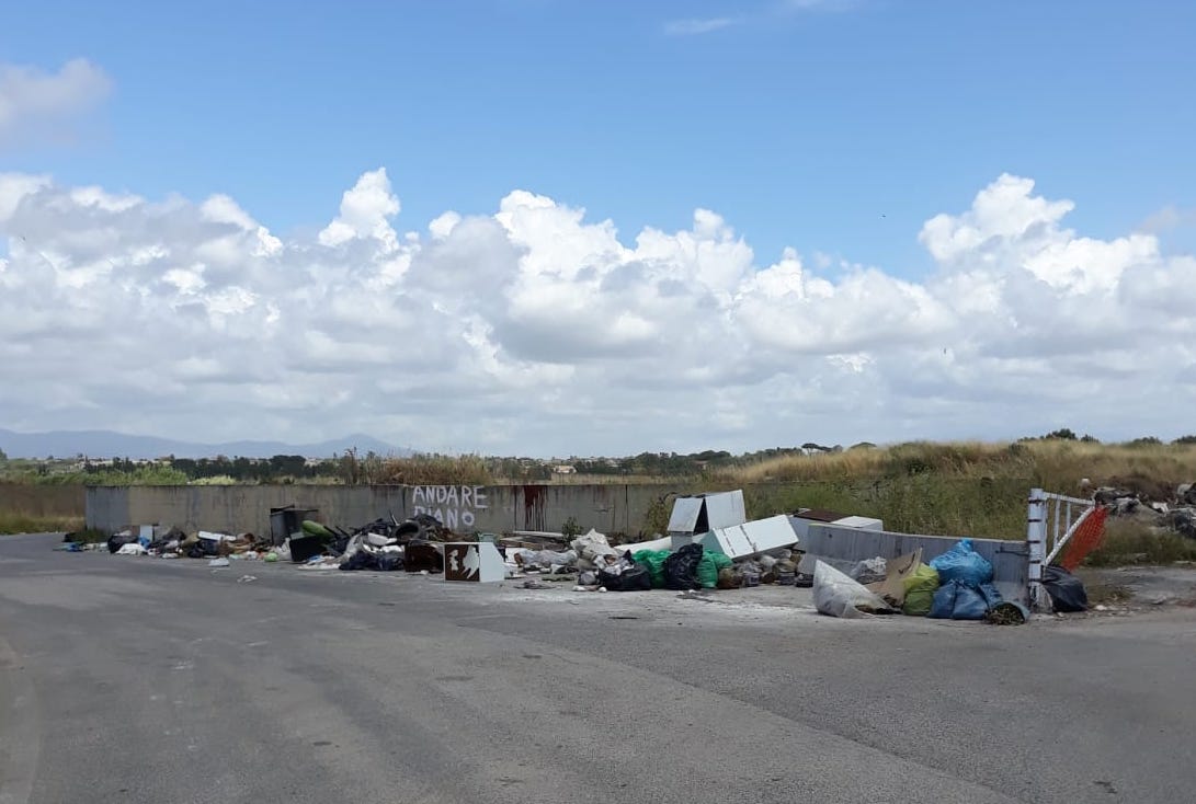 Ardea, isola (poco) ecologica: tonnellate di rifiuti sul piazzale e in strada a poca distanza dal mare e dall’aerea archeologica