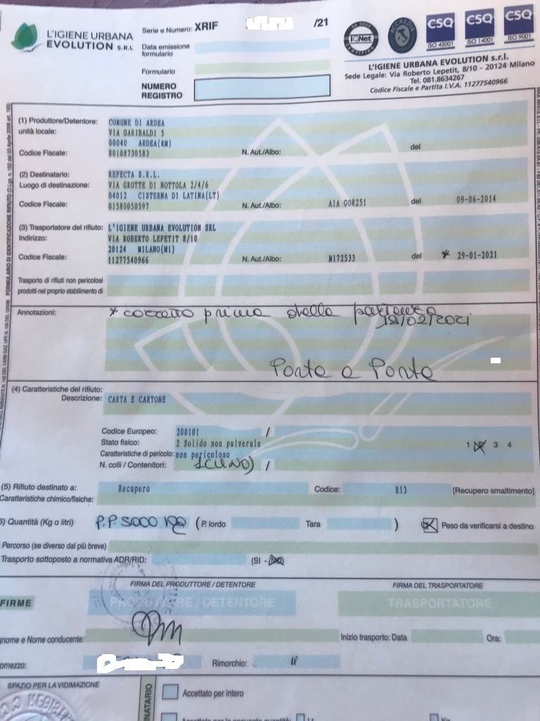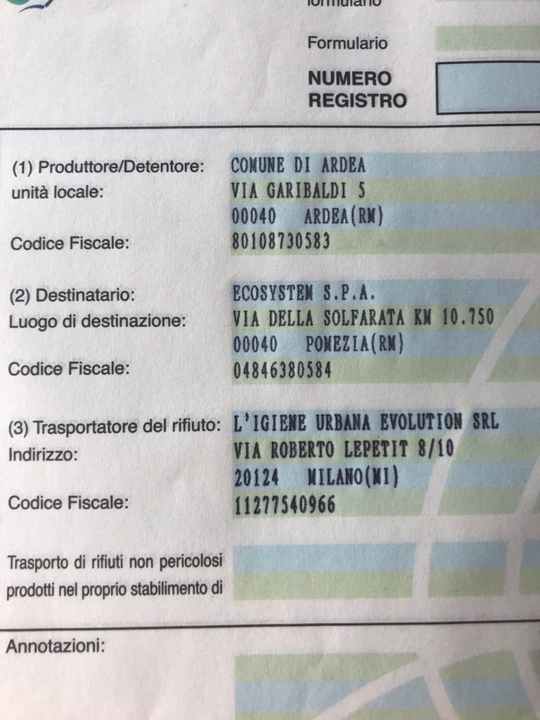 Il comune di Ardea autorizza il pagamento a Ecosystem di Via della Solfatara Km 10,750 per poter scaricare i rifiuti. Nel formulario timbrato dal DEC si evince che i rifiuti sono stati raccolti dall’Igiene urbana Evolution Srl Via Roberto Lepetit, 8/10 – 20124 Milano. Ma questo è quanto avevamo già detto nel nostro precedente articolo. Il Comune sa chi sta lavorando, ma non può pagare perché non ci sono fatture emesse. Però a rimetterci sono gli operai, che da mesi sono senza stipendio. I dipendenti hanno protestato in maniera civile e non eclatante, ma non per questo il problema non deve essere risolto.