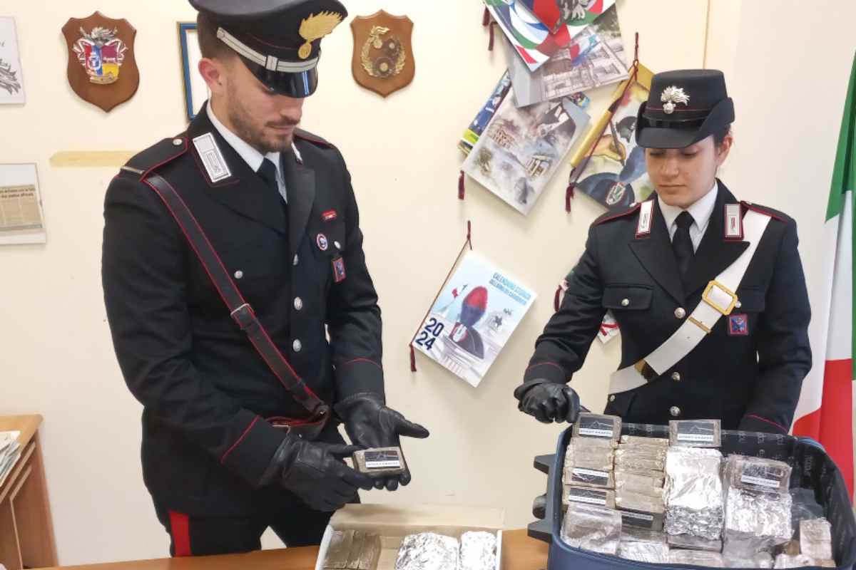 Ebbene, all’interno del mezzo sono stati subito rinvenuti 22 panetti di hashish e diversi involucri di cocaina, del peso di circa 60 grammi, oltre alla somma in contanti di circa 5.300 €. Dopo aver identificato i tre – si tratta di due uomini di 23 e 32 anni e una donna di 20 anni – i Carabinieri hanno esteso la perquisizione all’abitazione e al garage, dove era parcheggiata un’altra auto. Qui è saltato fuori il resto della sostanza stupefacente: altri 17 chili di hashish, nonché un doppio fondo, aperto con l’ausilio di una squadra dei Vigili del Fuoco e risultato vuoto.