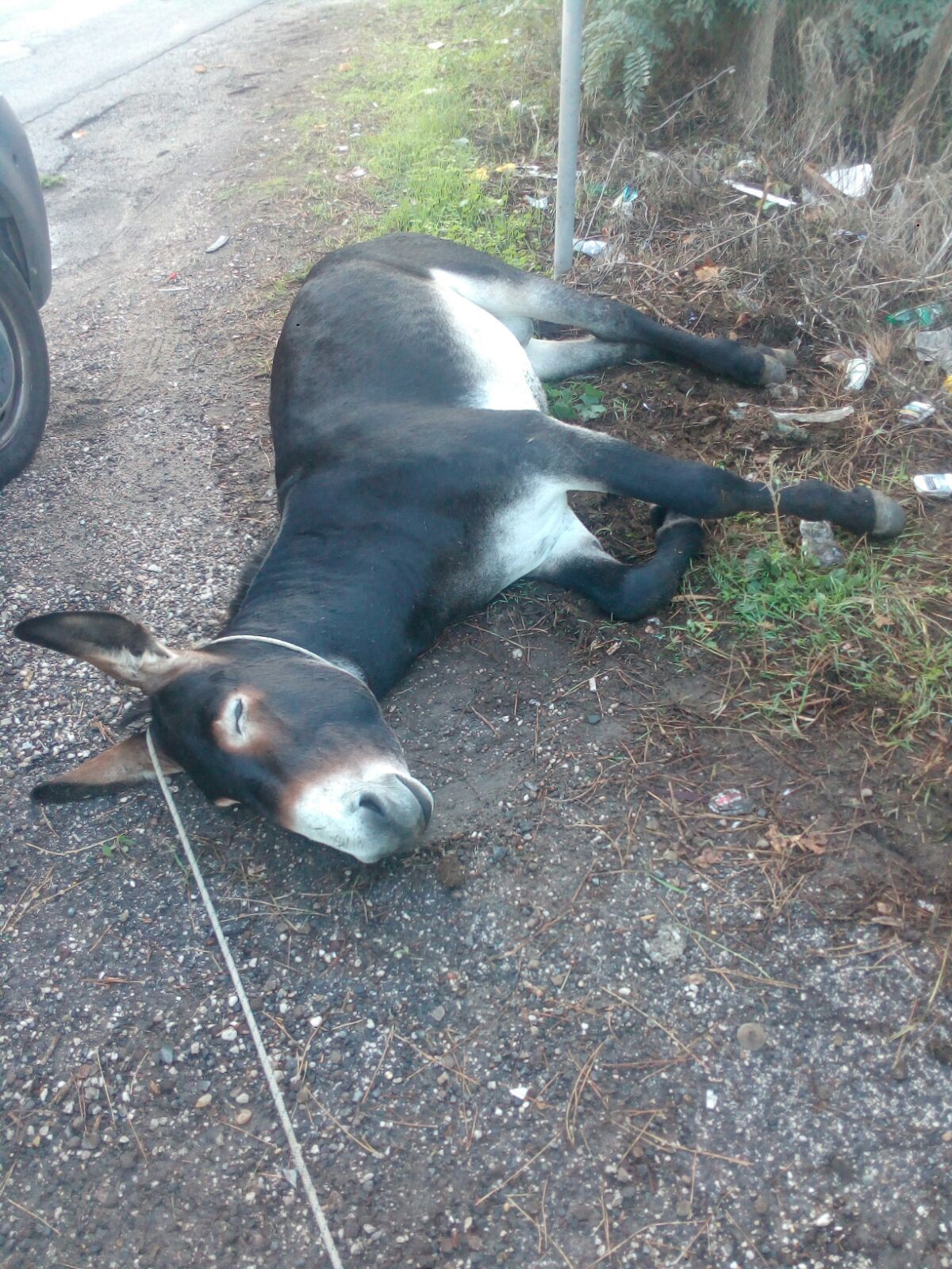 Ciuchino, così è stato chiamato dai suoi salvatori il giovane ciuco investito da un’auto questa notte all’01.00 su via Ardeatina.