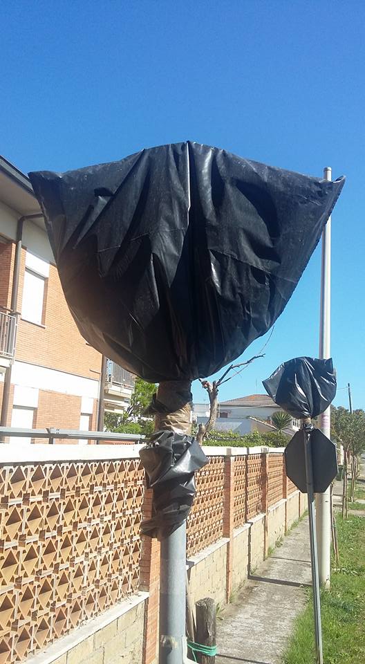 Segnaletica “imbustata” per proteggerla dai rigori dell’inverno? Le foto mostrano i cartelli della segnaletica stradale verticale che, a Tor San Lorenzo lido, sono stati coperti dai sacchi neri della spazzatura, impedendo di capire quale sia il divieto o l’indicazione che contengono.