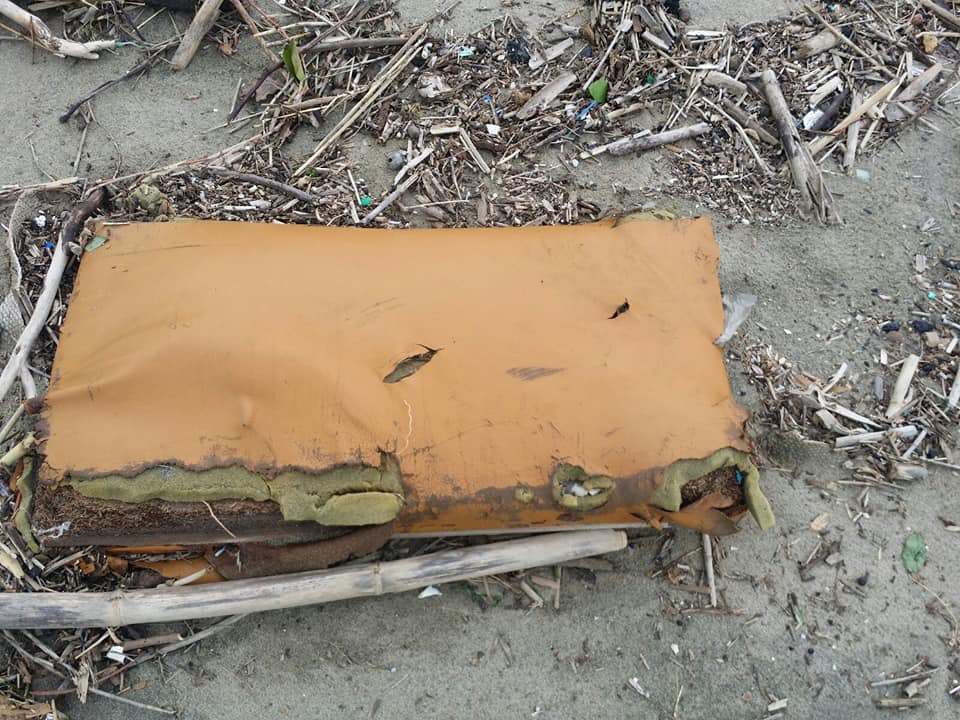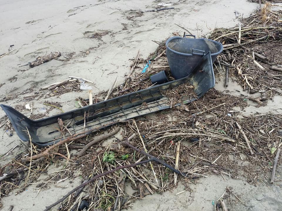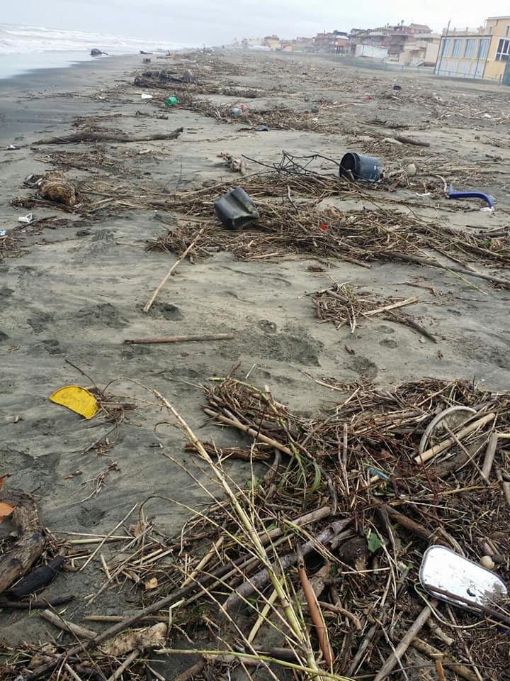 Anche nella vicina spiaggia di Marina di Ardea si sono riversati diversi detriti, non è chiaro da dove. Tra i detriti anche due copertoni di una ruota d’automobile.