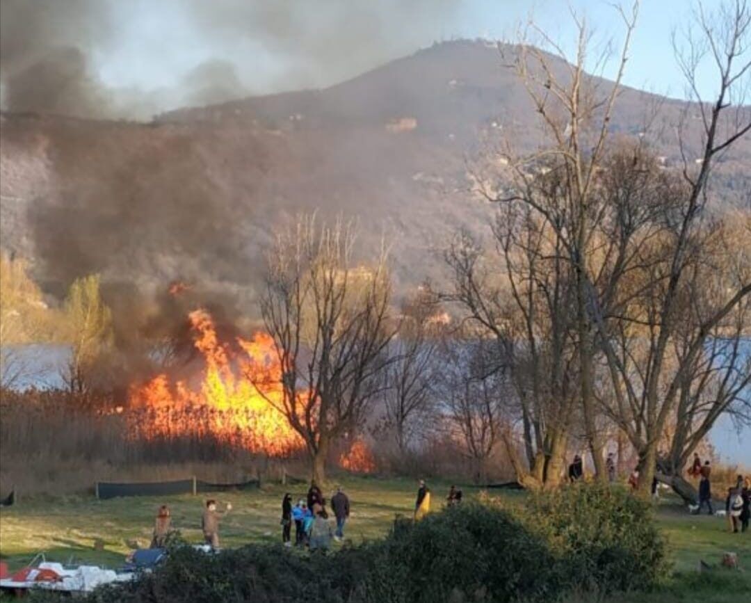 Un incendio è scoppiato questo pomeriggio pochi minuti prima delle 17:00 sulle rive del lago di Albano, a Castel Gandolfo. Le fiamme hanno distrutto il fragmiteto proprio in riva al lago. Sul posto sono intervenuti i vigili del fuoco e gli uomini della protezione civile per spegnere l’incendio. Presenti anche i carabinieri e una pattuglia della polizia locale.