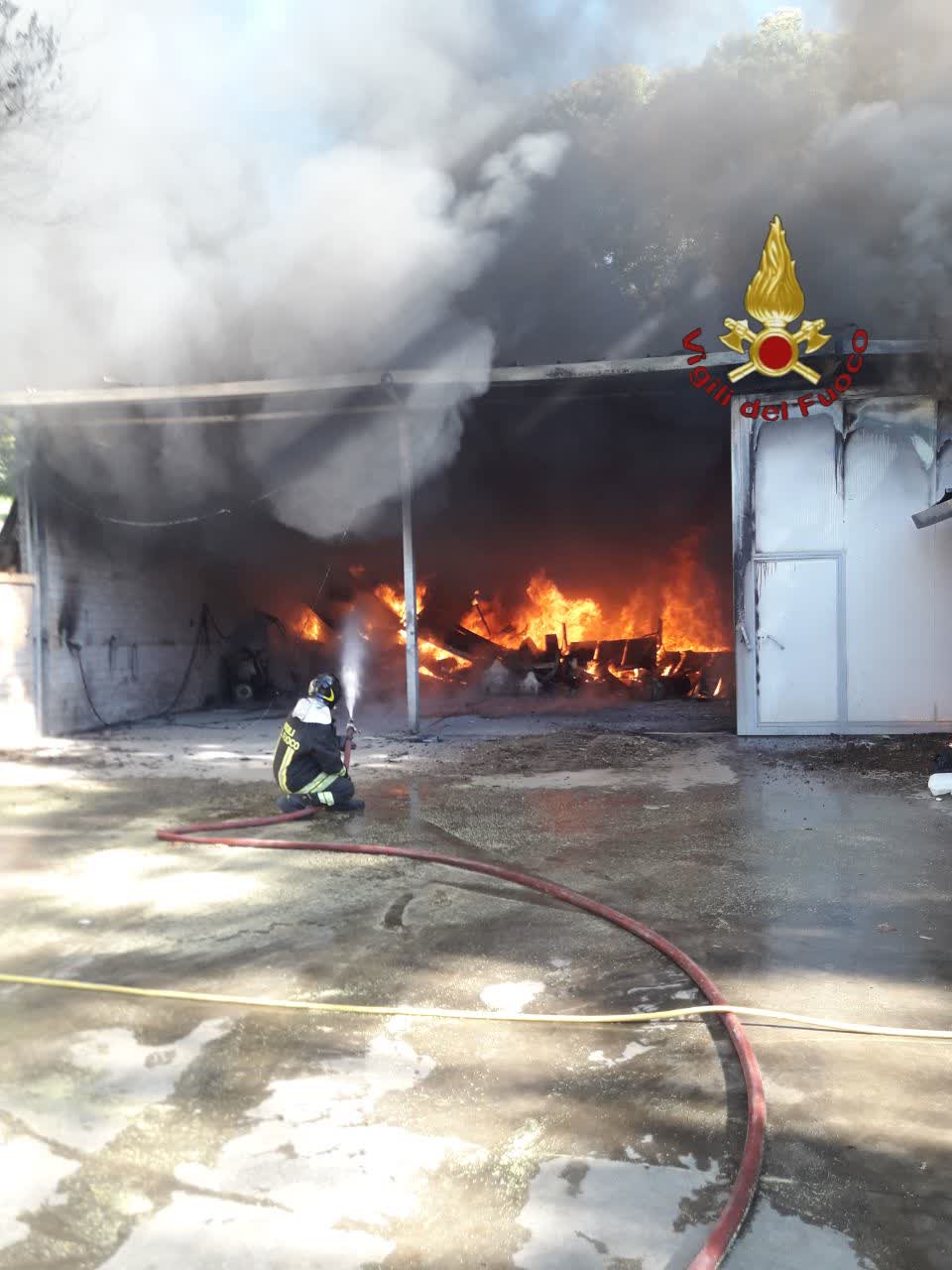 Le fiamme questa mattina sono divampate all’interno di un capannone, dove era presente materiale edile e mezzi di movimento terra. Una struttura enorme, di circa 300 mq, con copertura in lamiera, che è andata completamente distrutta.