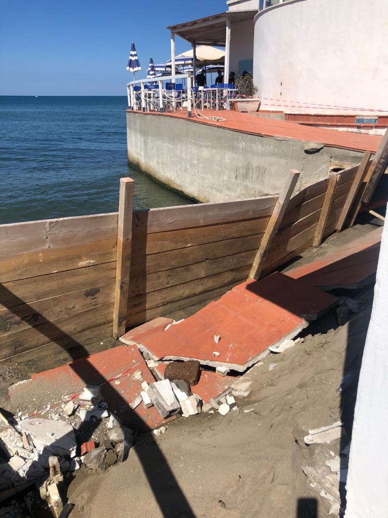 Dal 2016 le mareggiate invernali hanno devastato gli stabilimenti di Fregene, soprattuto nella parte sud, e di Focene. Alcuni di questi stabilimenti, ormai completamente distrutti, non hanno più riaperto, come “La Rivetta“. Si trova proprio accanto allo stabilimento “La Nave”, che approfitta di quel poco di arenile lasciato dagli ex colleghi per poter posizionare qualche lettino e ombrellone. Ma adesso, con questo ulteriore crollo, sarà difficile proseguire la stagione. Lo spazio è ulteriormente ridotto.