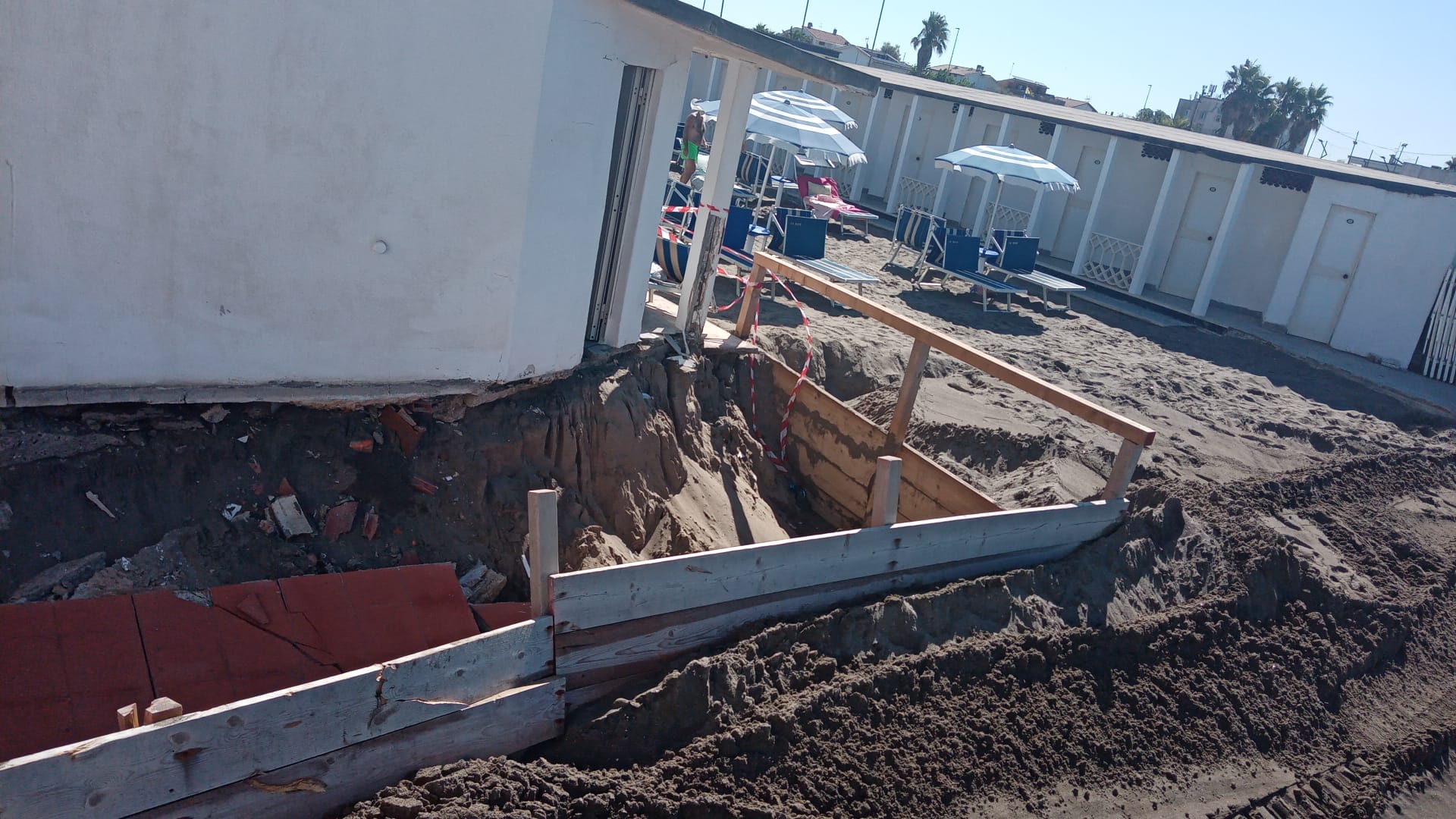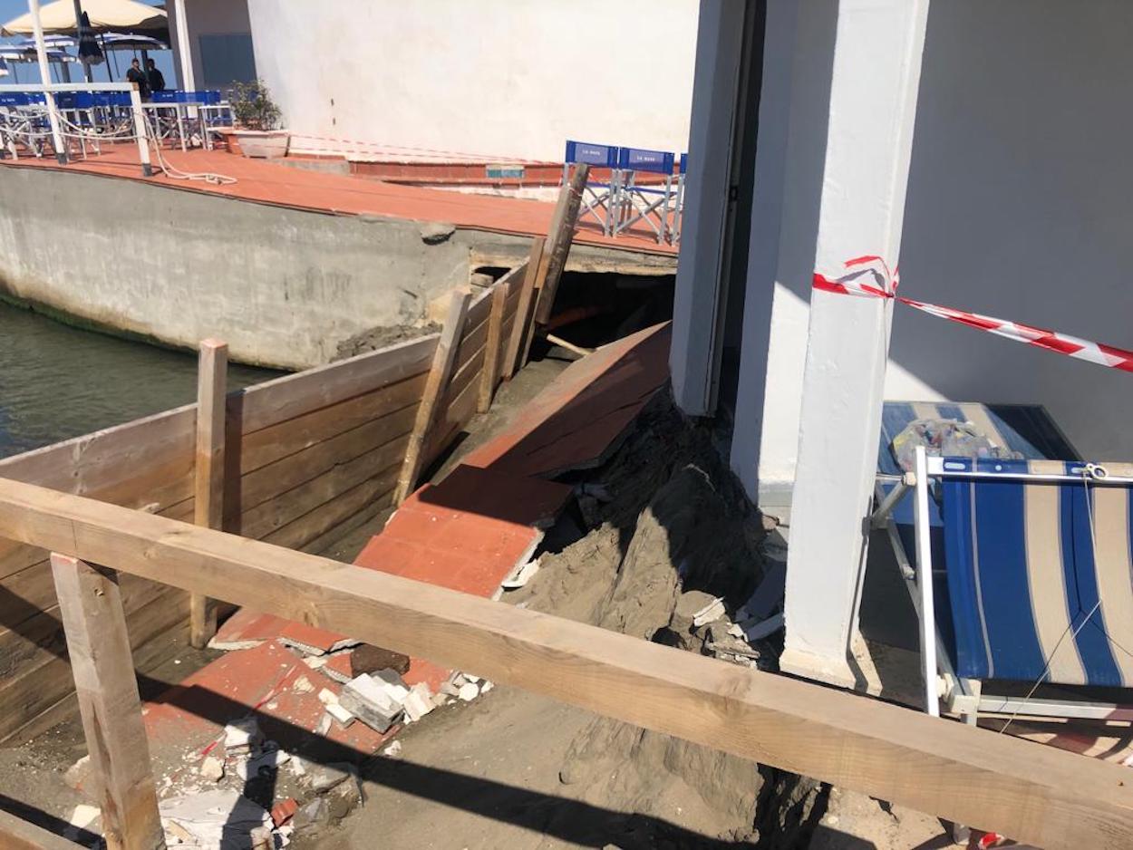 “L’erosione ha fatto arrivare il mare dentro alla struttura, mangiandosi circa 100 metri di spiaggia”, spiega Malko Sequi, il titolare dello stabilimento. “Il crollo completo ha riguardato una cabina in particolare, ma ha fatto dei danni potenzialmente molto gravi, perché rischiamo di perdere una fila di cabine e un settore intero di spiaggia”.