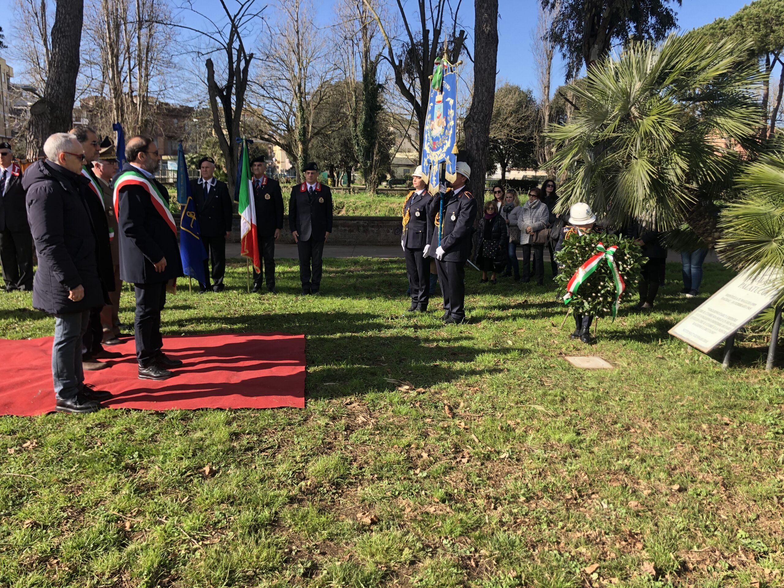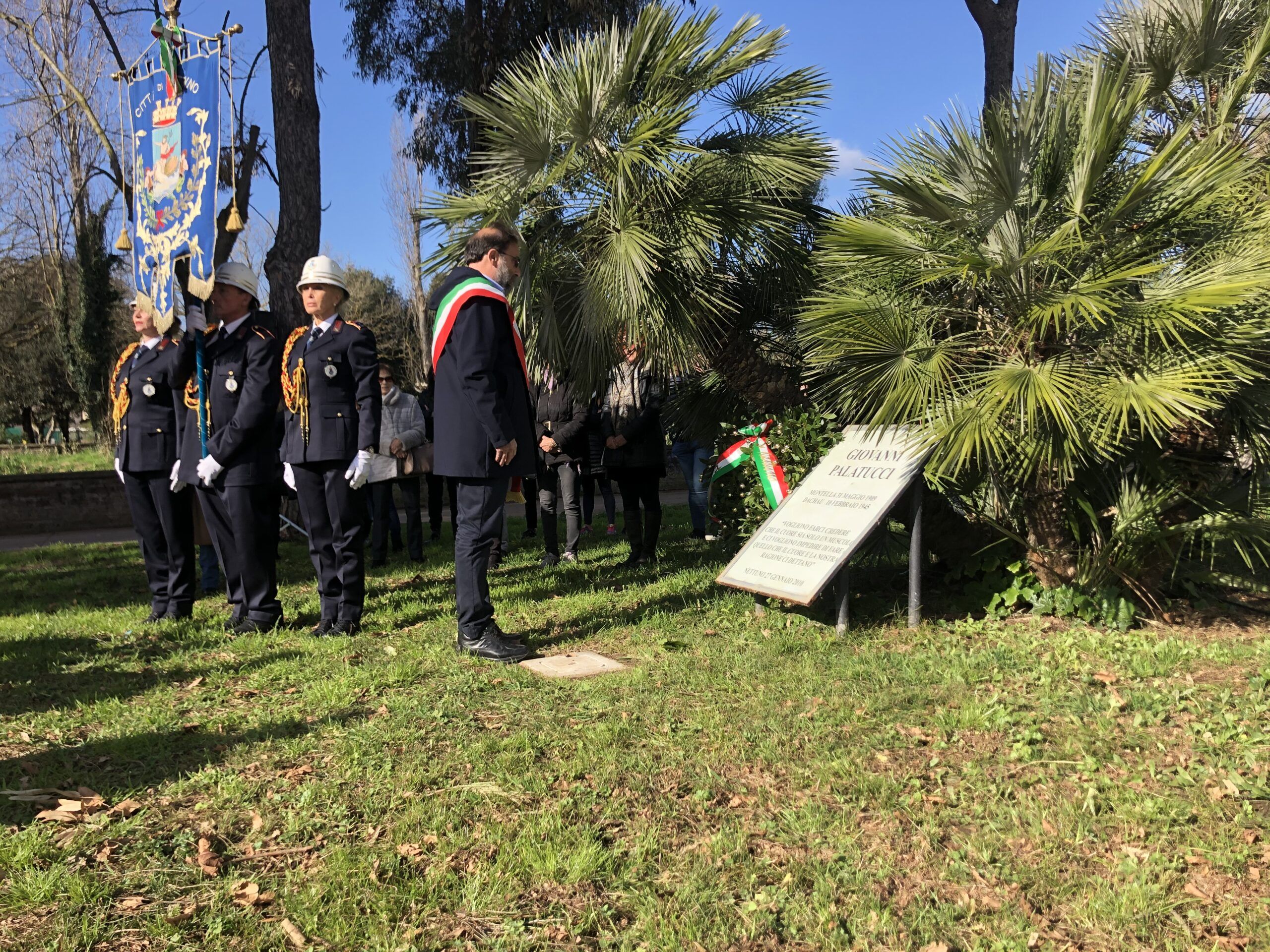 Una corona di fiori è stata deposta ai piedi della targa in memoria di Giovanni Palatucci che, da Questore di Fiume, contribuì a creare un corridoio sicuro per impedire la deportazione di migliaia di ebrei durante la seconda Guerra Mondiale e che morì nel campo di concentramento di Dachau il 10 Febbraio 1945.
